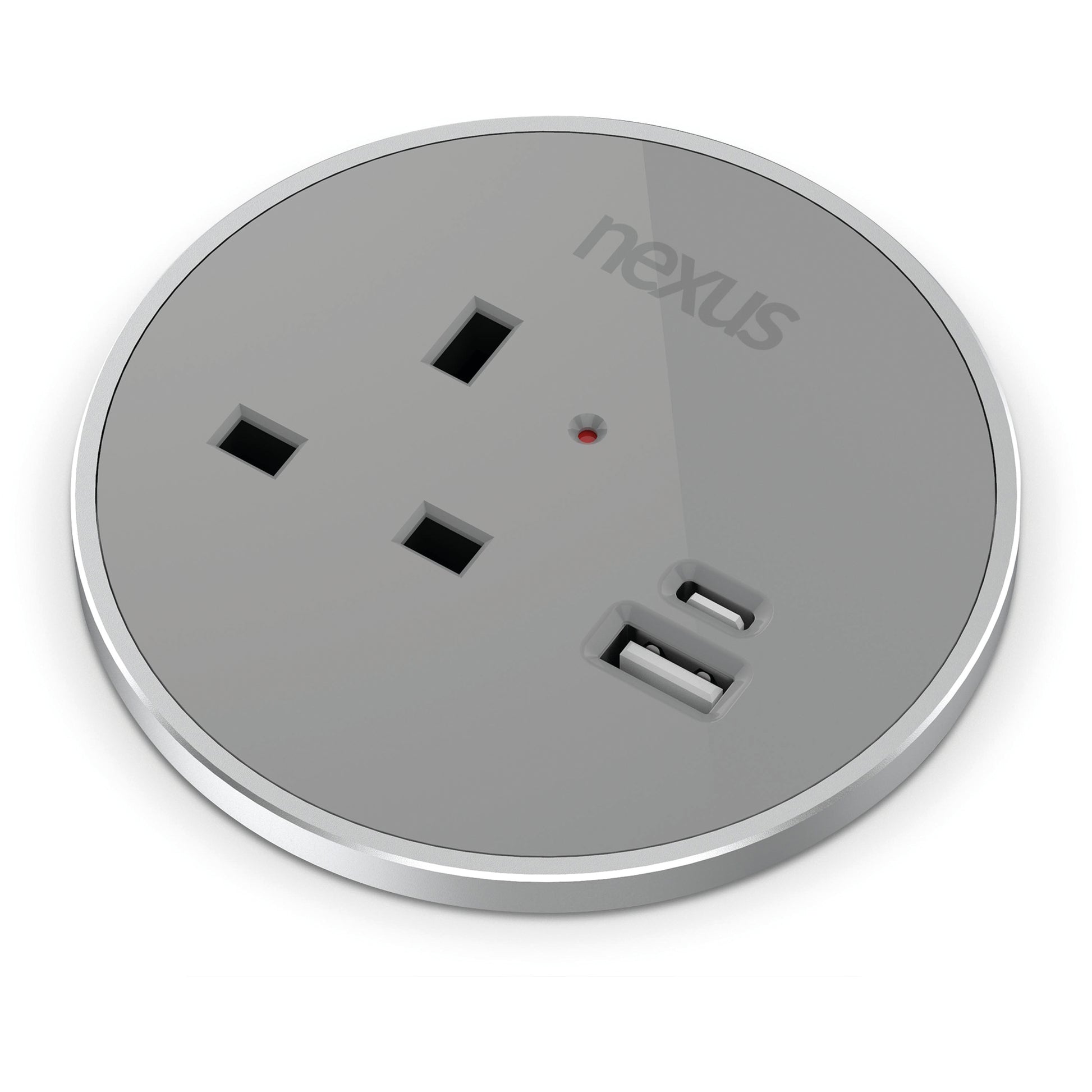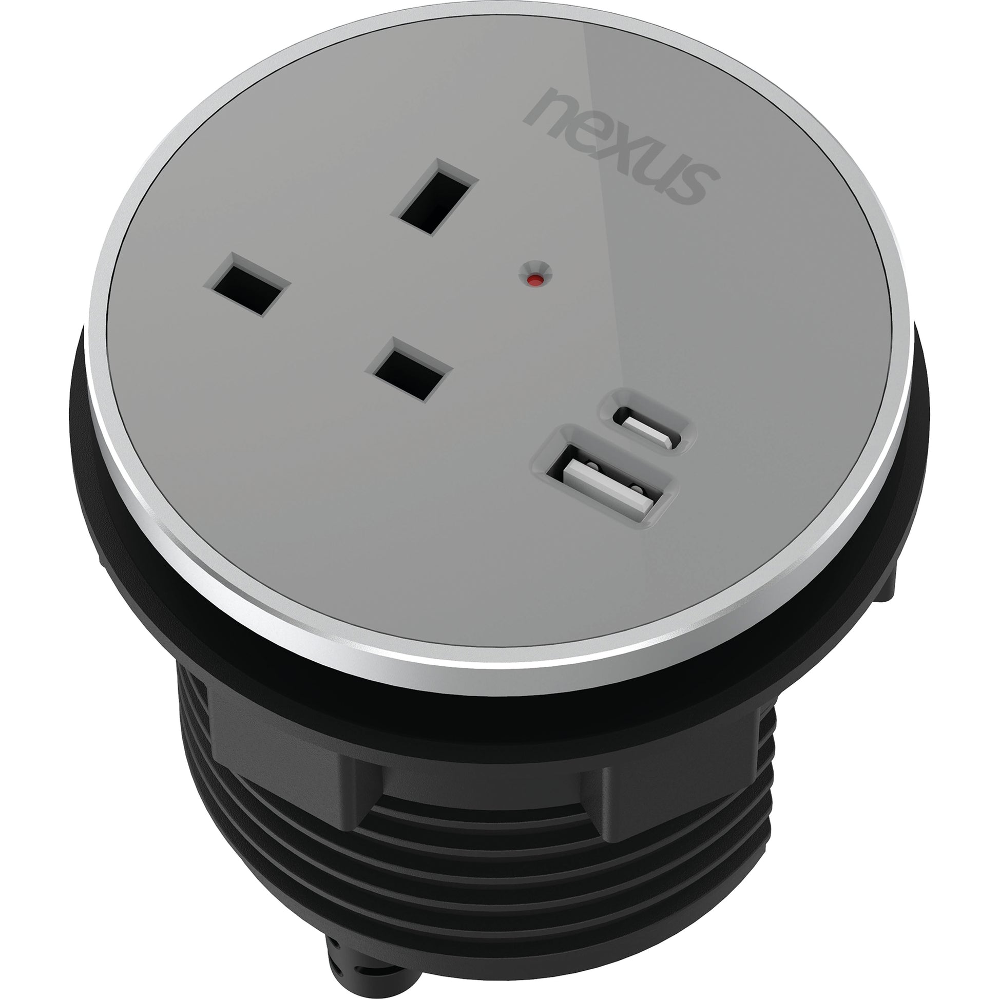 Nexus In Desk Power Module Grey KF882379. Provides convenient access to electrical outlets and USB charging ports. Promotes productivity and connectivity. Easily accessible power sources. Dimensions (WxDxH): 95x95x50mm. Colour: Grey.