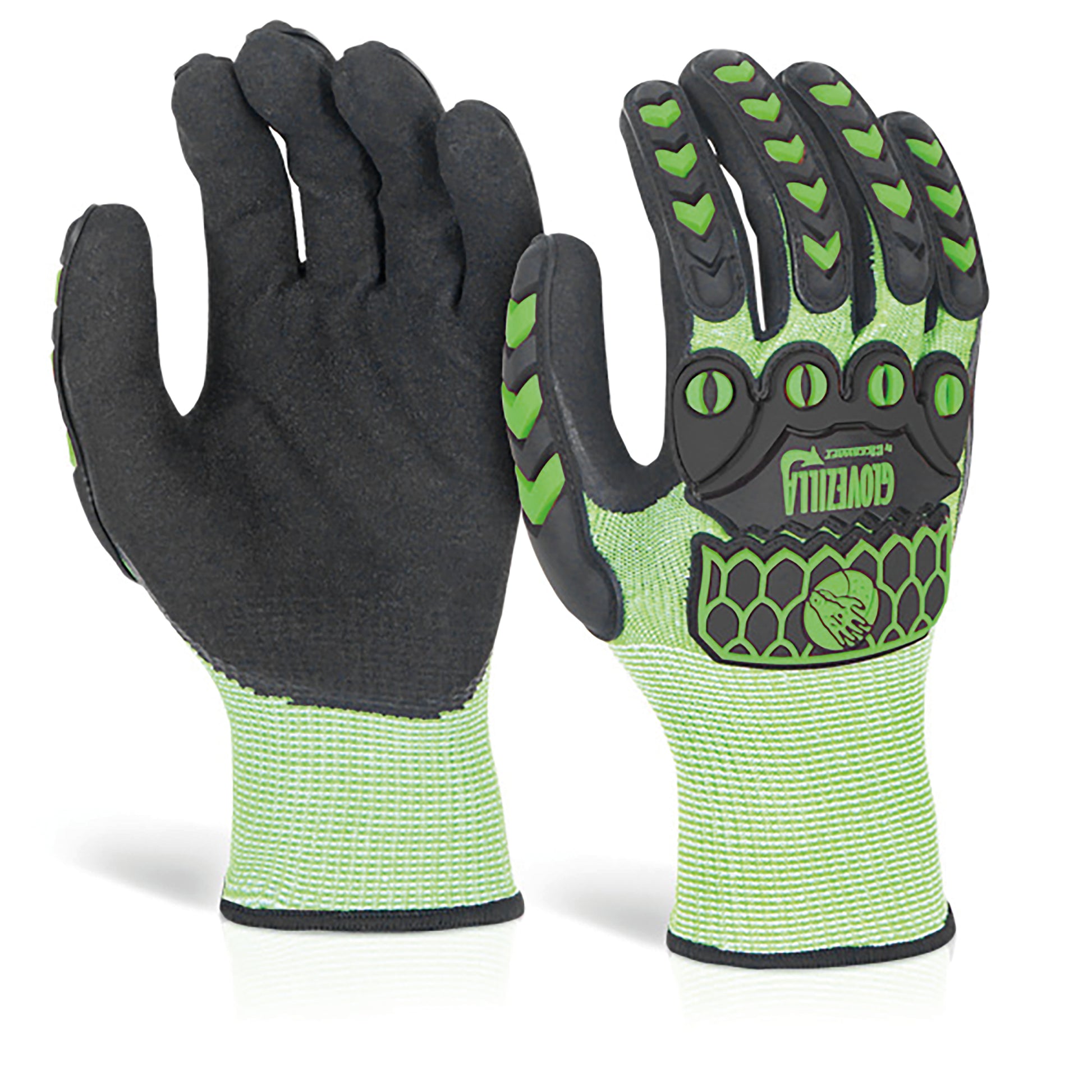 Beeswift Glovezilla Nitrile Palm Coated High Visibility Gloves 1 Pair. HPPE 49% Polyester 25% Glass Fibre 12% Steel 8% Spandex6% Liner. 100% nitrile rubber coating. 100% PVC TPR Back of hand protection. Lightweight. Suitable for general engineering use.