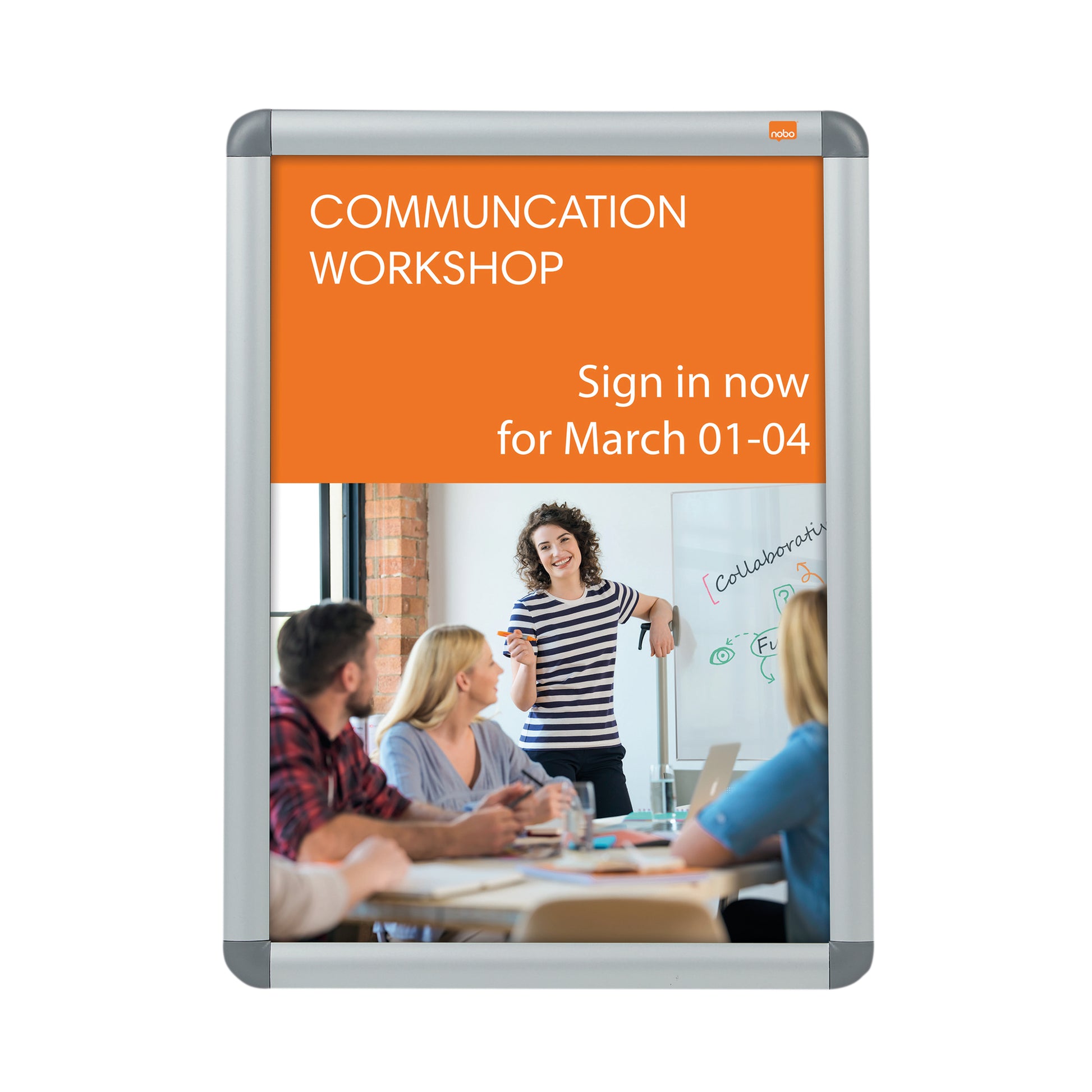 Wall mounted poster frame for the secure display of posters, signs and information. The smart aluminium snap frame trim gives a professional finish and allows quick and easy content change. This stable and secure sign holder has a back panel which attaches firmly to the wall using through corner mounting and the protective anti-glare cover is easy to wipe clean. An ideal solution for the display of temporary or permanent posters and signs. Display area size A3.