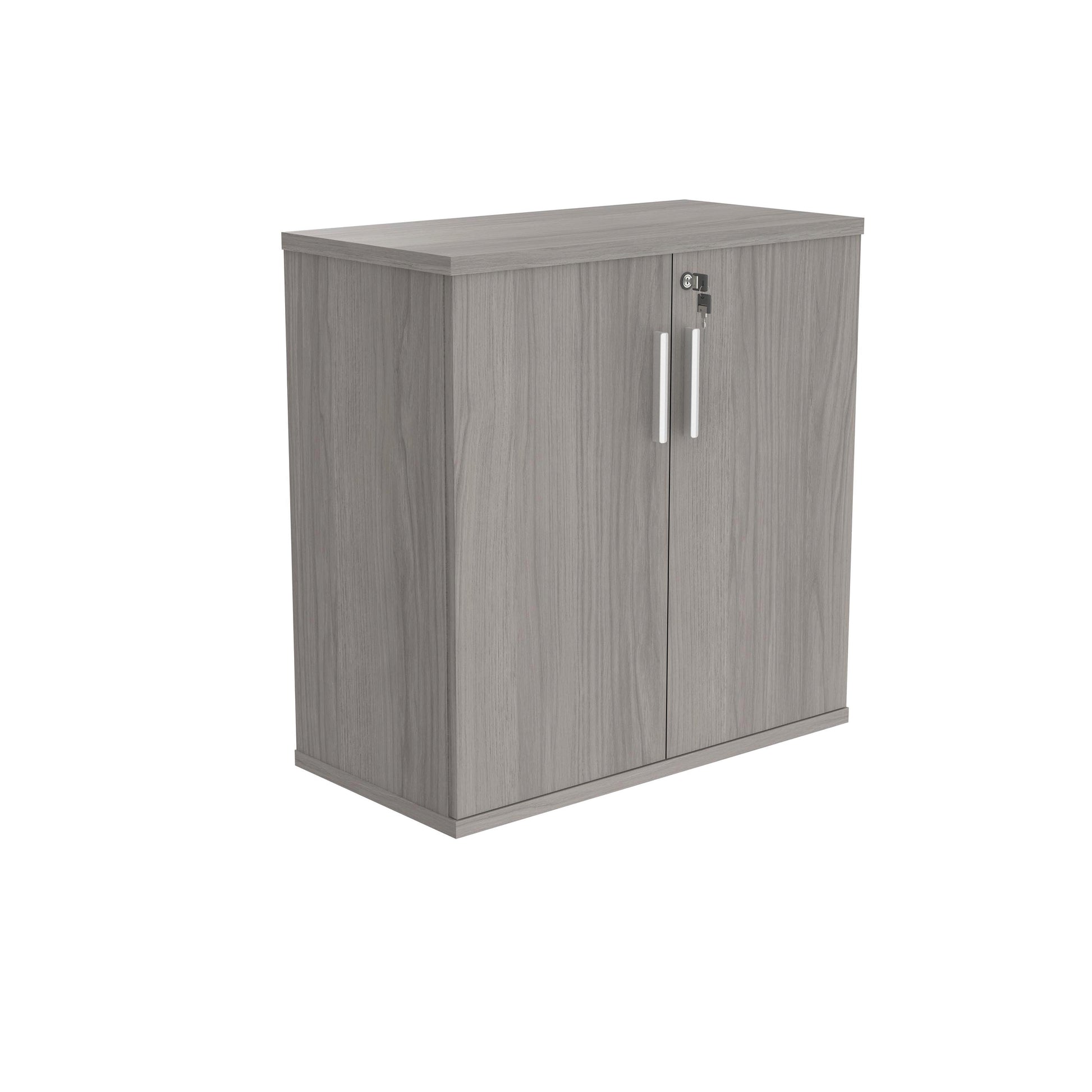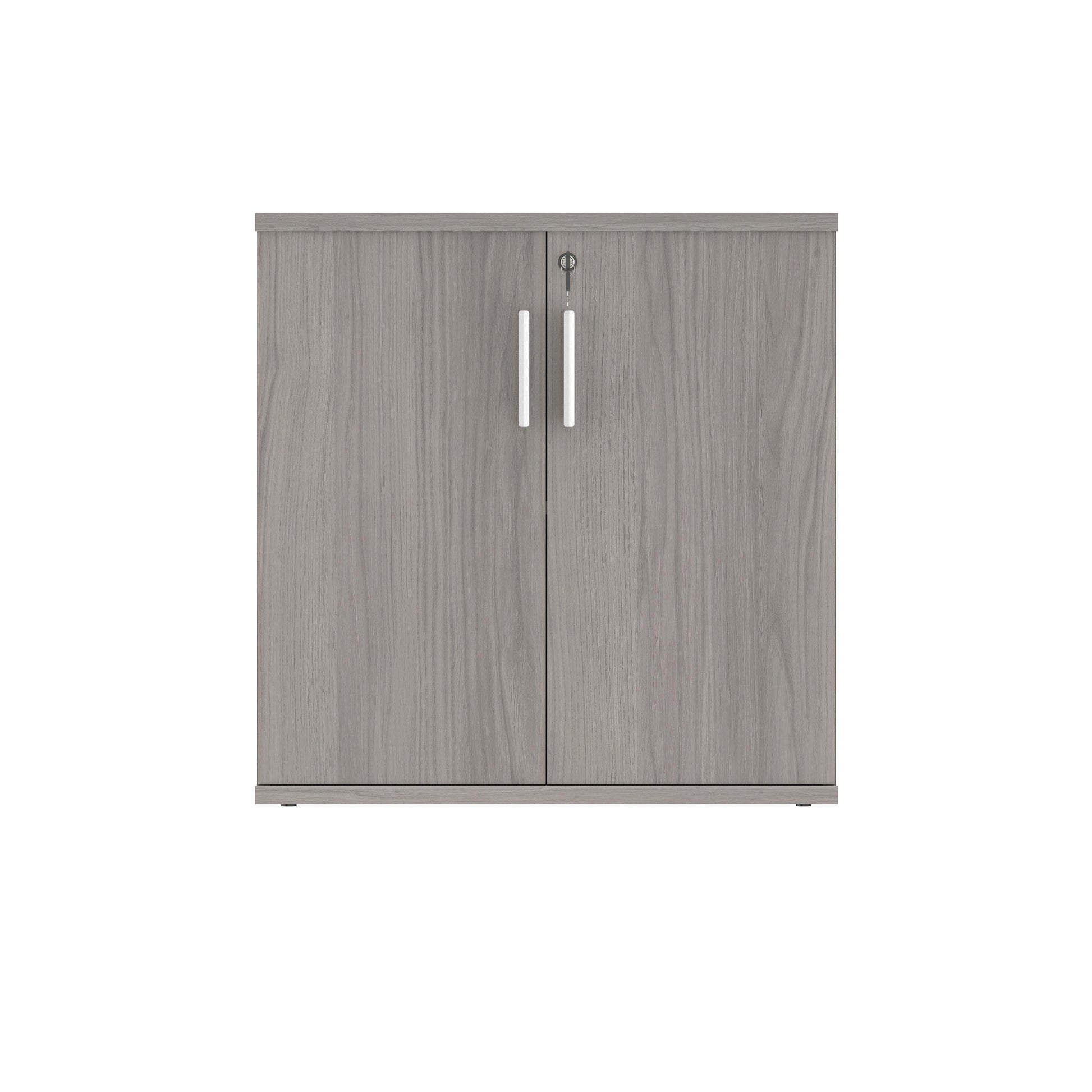 Polaris Cupboard Lockable 800x400x816mm Alaskan Grey Oak KF821346. Polaris Cupboard provides a convenient storage solution. Floating shelves. 2 lockable doors. Component Warranty: 12 Months. Dimensions (WxDxH): 800x400x816mm. Colour: Alaskan Grey Oak.