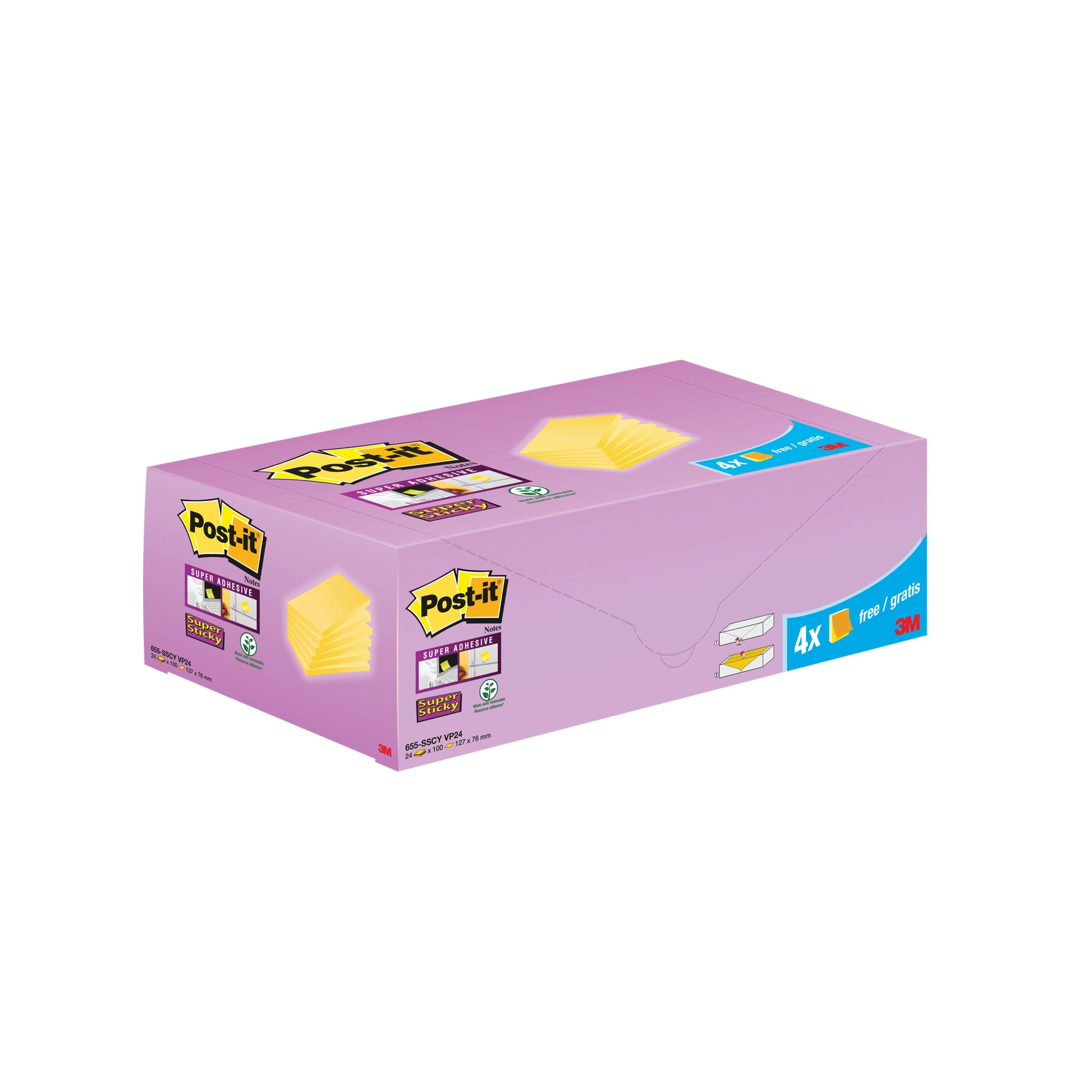 Post-it Super Sticky Notes Canary Yellow Cabinet 127x76mm (Pack of 24). Strong Super Sticky adhesive adheres to most surfaces, including doors, walls and windows. Made from 100% PEFC certified paper fibre. 90 sheets per pad. Canary yellow.