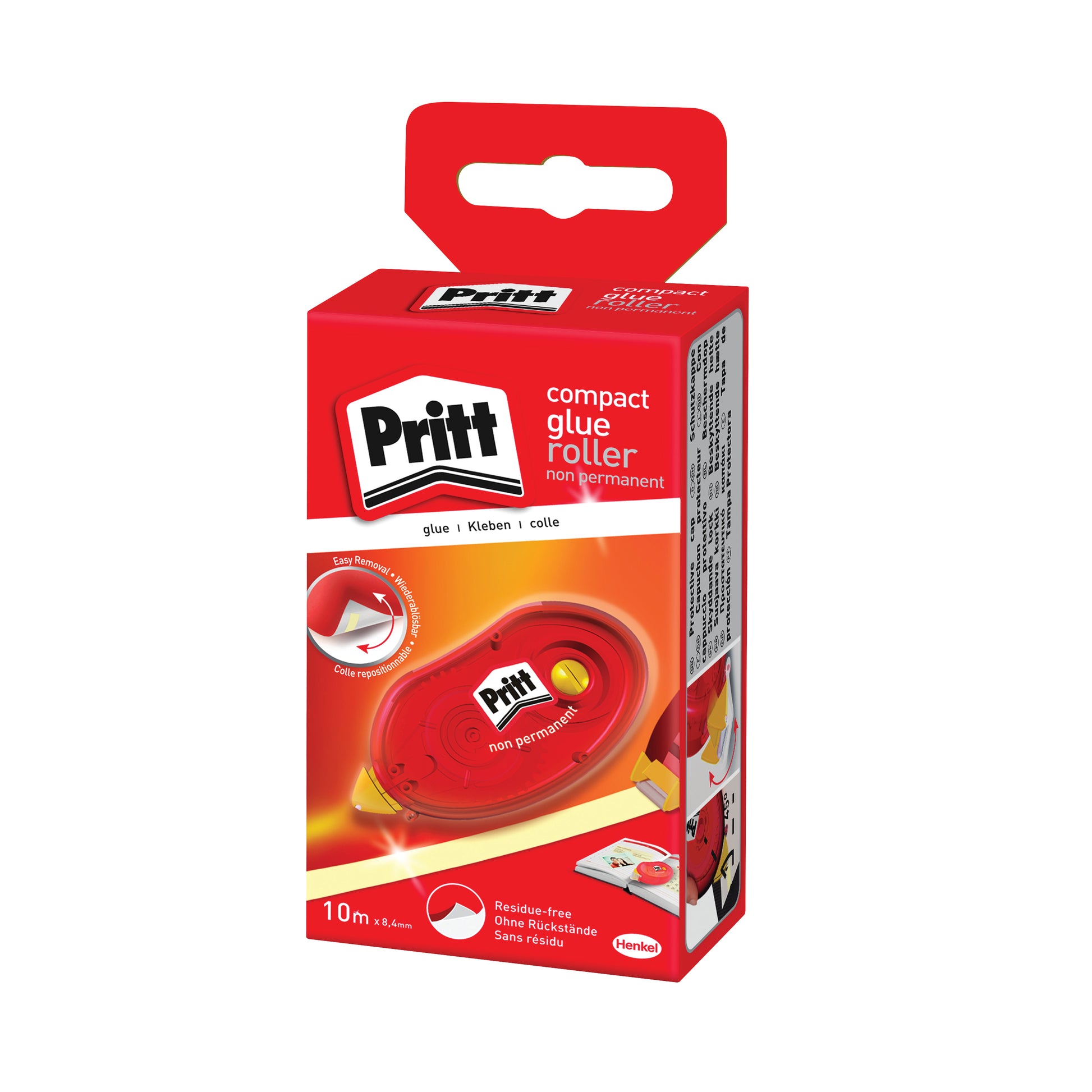 Pritt Non Permanent Glue Roller Compact 8.4mm x 10m (10 Pack) 2120625. Refillable glue roller for fast and clean glue application. Dries instantly for immediate bonding. Wind up mechanism with tightening screw to prevent slack.