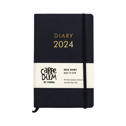 Pukka Pad Carpe Diem 2024 Diary Week To View Softcover 130x210mm Black 9806-CD. 80gsm acid-free cream paper. Elastic fastener. Ribbon marker. Expandable inner pocket.