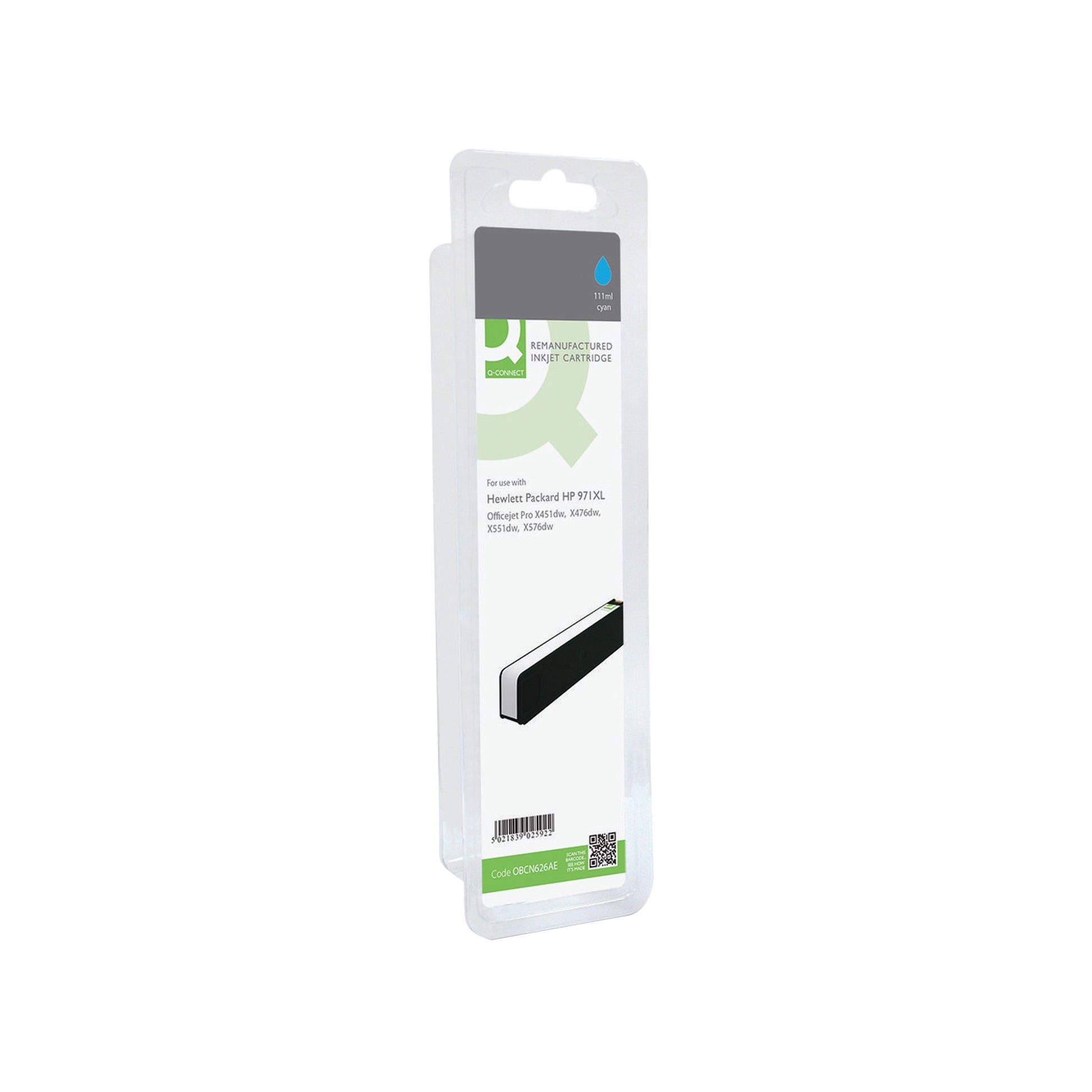Q-Connect HP 971XL Remanufactured Ink Cartridge High Yield Cyan CN626AE-COMP. Page yield: Up to 6600 pages. For use with: Officejet Pro X451dw, X476dw, X551dw and X576dw.