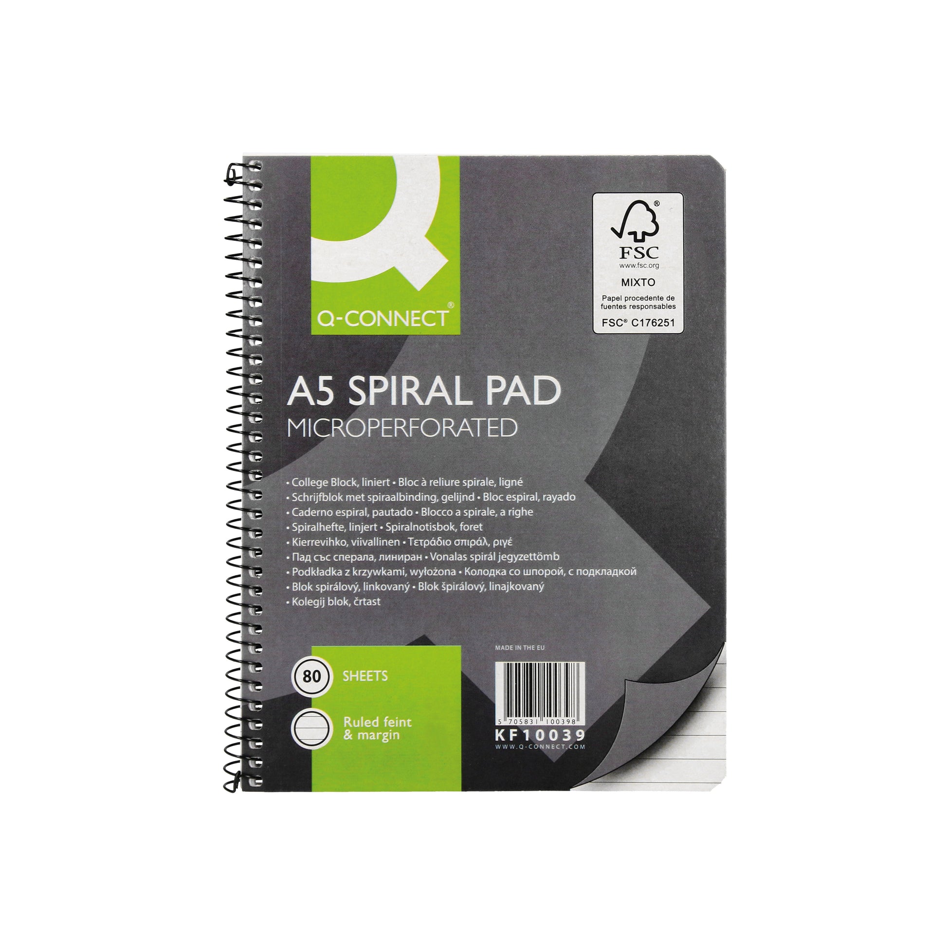 Q-Connect Ruled Margin Spiral Soft Cover Notebook 160 Pages A5 (Pack of 5) KF10039. Constructed over a rigid back board with micro-perforations for easy removal of sheets. Each pad contains 160 pages of quality White wove paper ruled - feint and margin.