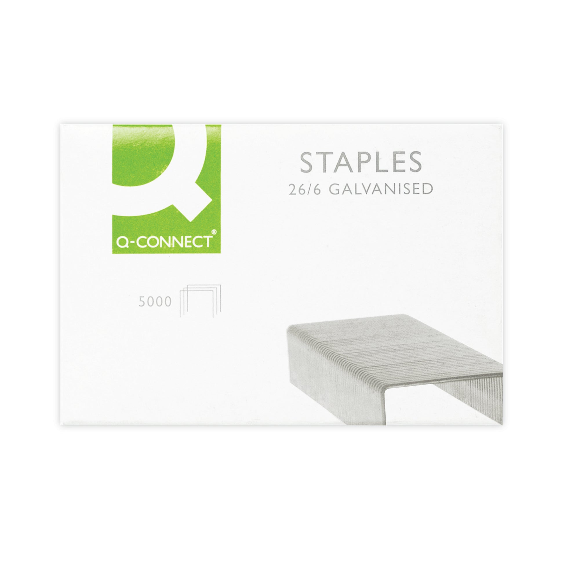 Q-Connect 26/6 Staples for strong and secure fastening. Fit with a variety of standard sized staplers. Ensures that pages stayed fastened. Designed not to jam in your stapler. Low cost high value alternative to bigger brands. Metallic Finish.