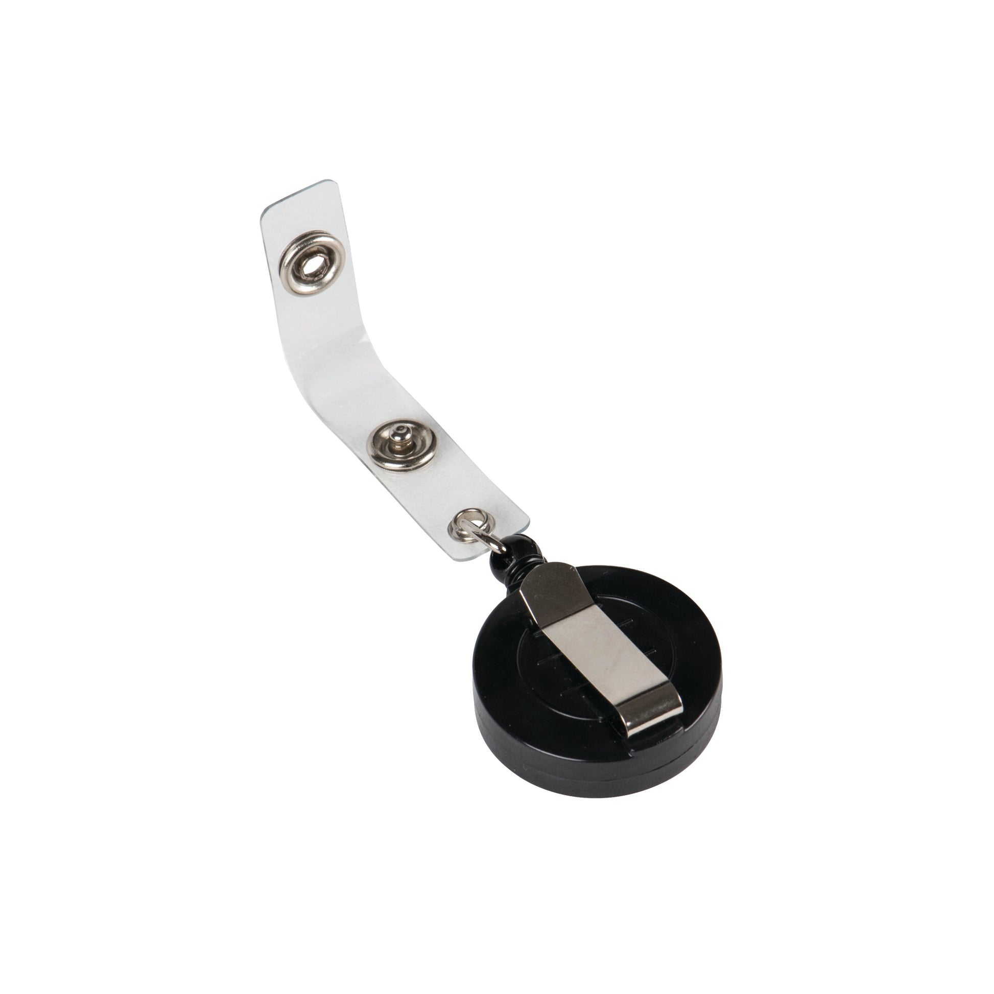 Q-Connect Retractable Badge Reel 60cm. Practical solution to displaying name badges and security cards. Easy to adjust length, reaching up to 60cm. Press stud clasp attaches to clothes or belt. Pack of 10.