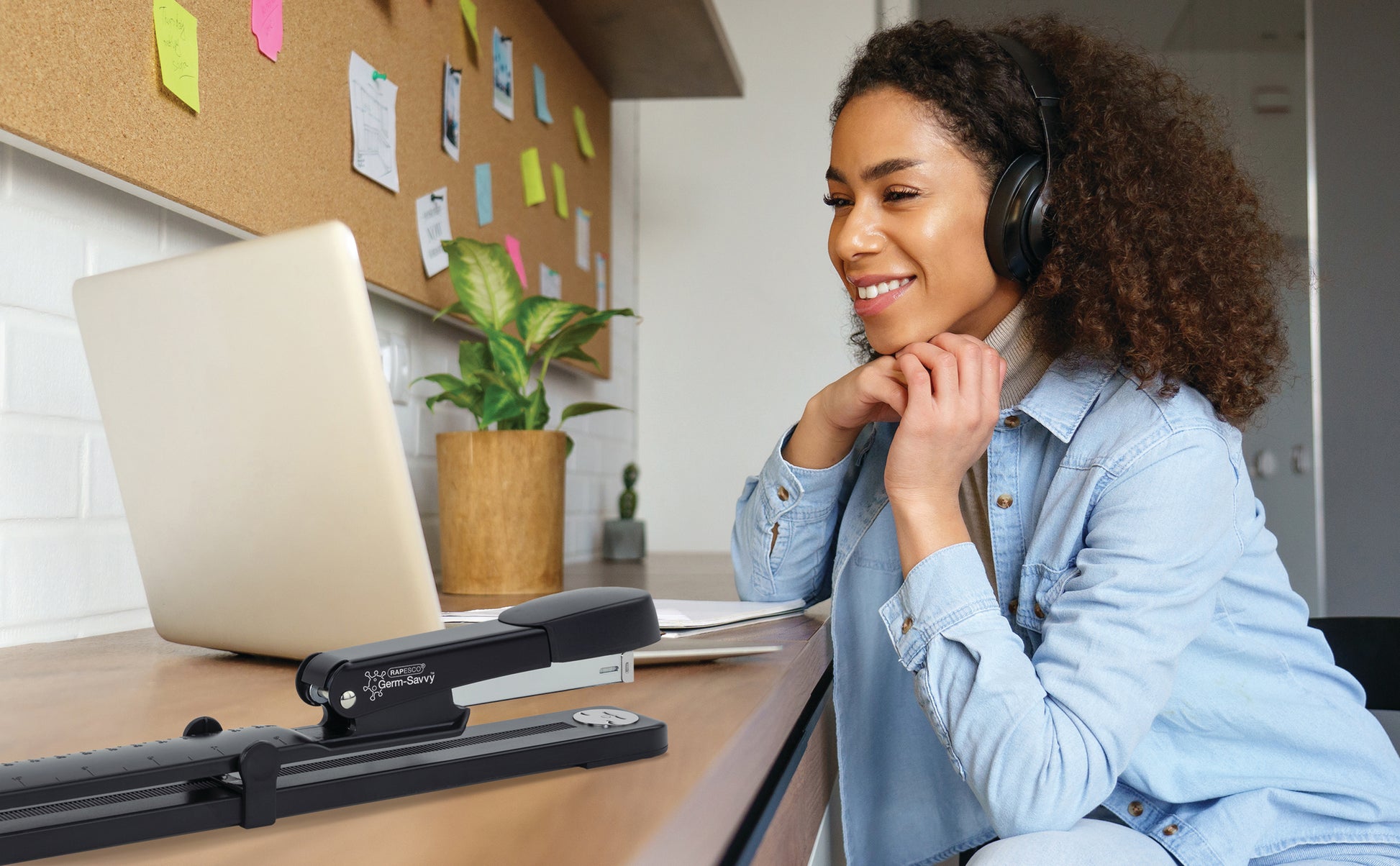 Long reach stapler for large sheets of paper or centre stapling of brochures. Manufactured from quality steel throughout and base plate with rubber pads. Stapling depth 300mm.