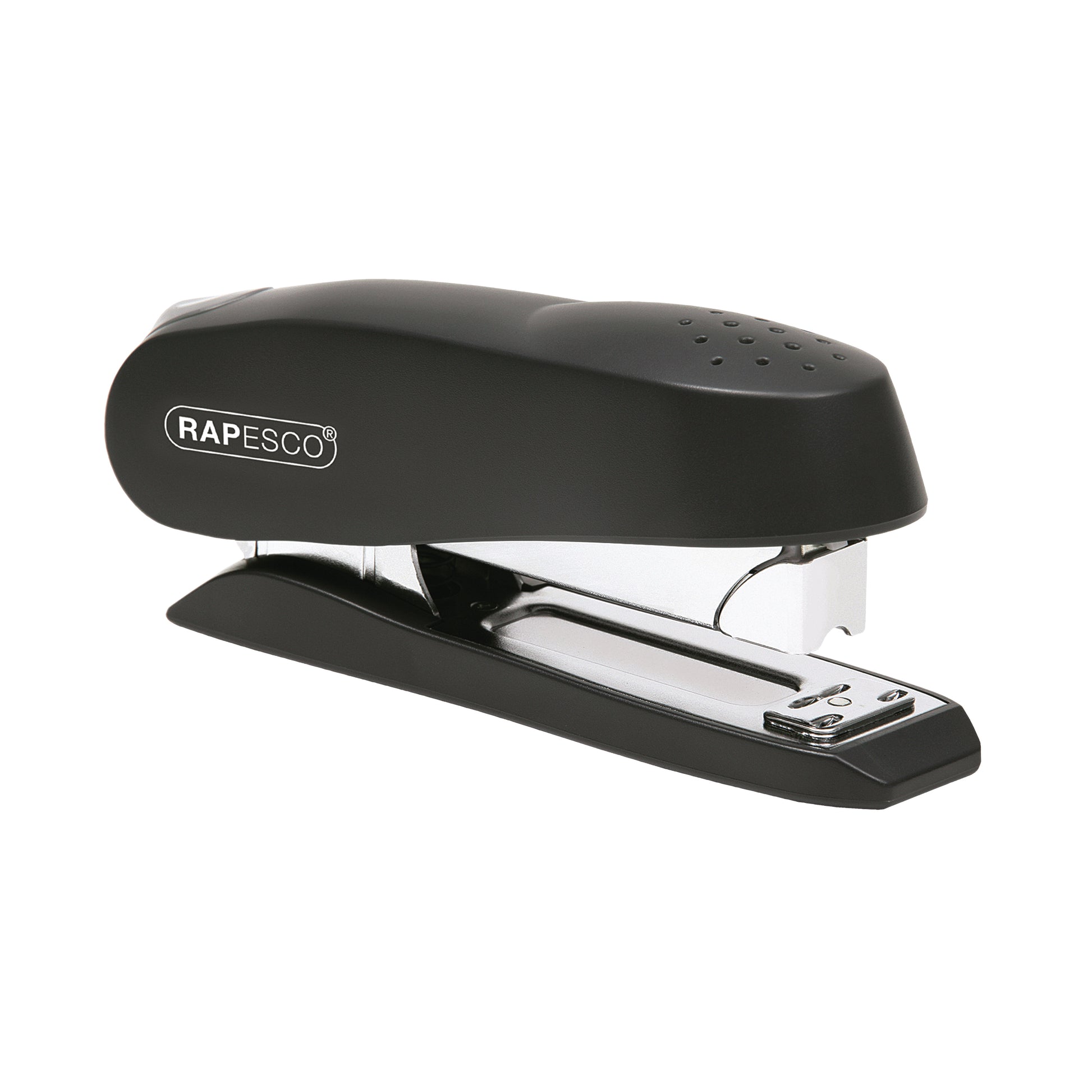 Rapesco Luna Stapler - 727. Heavy duty. Front loading. Half strip stapler with magazine release button. Safety brake and an all steel chassis. Staples up to 50 sheets of 80gsm paper. Colour - Black.