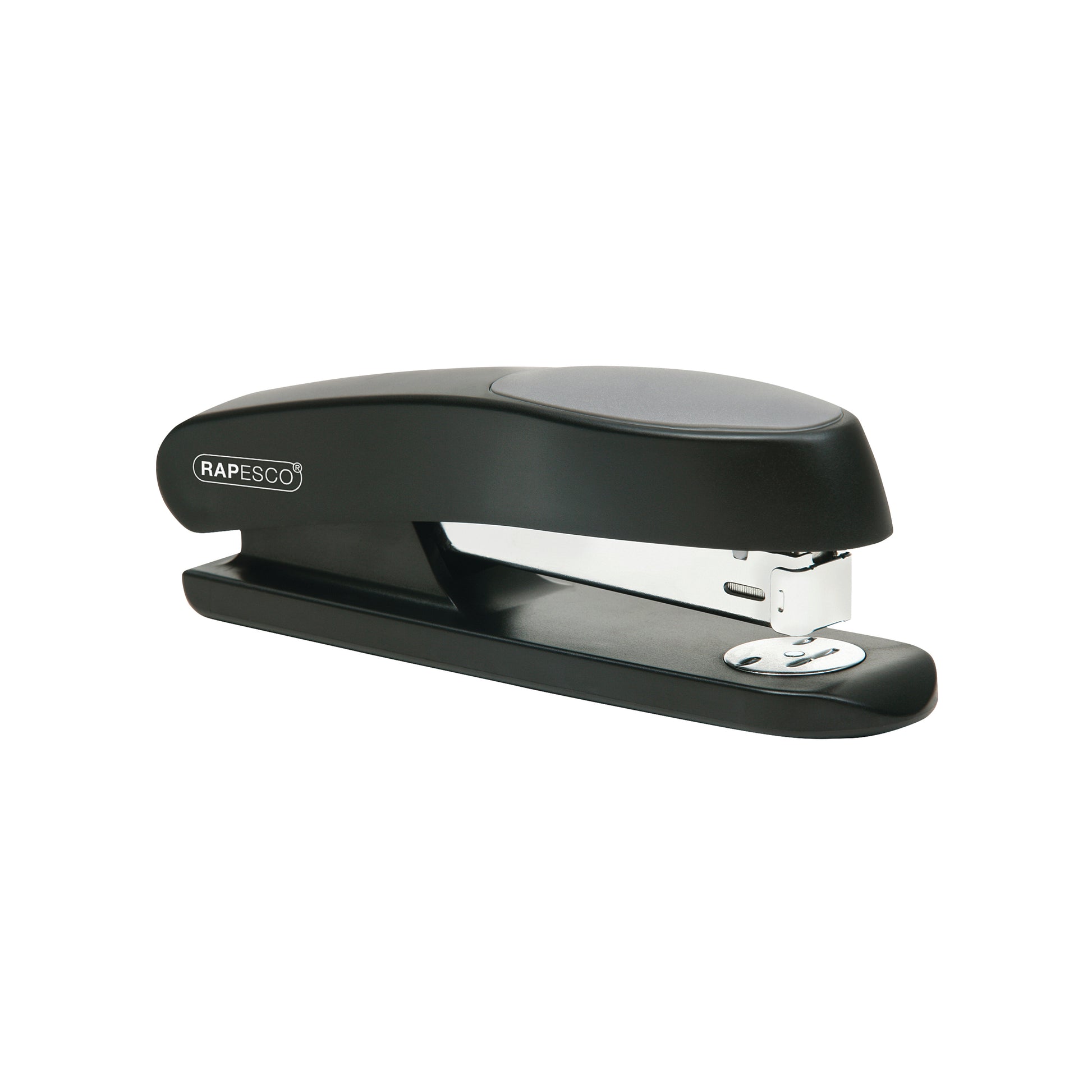 Rapesco R9 Manta Ray Stapler. Modern design with unique soft rubber top cap. Loads full strips. Throat depth 80mm. Capacity 20 sheets of 80gsm paper. Colour - Black.