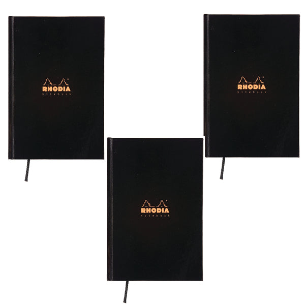 Rhodia Hardback Casebound Business Book A5. Ribbon page marker. Page corner micro-perforated for identification of last page used. Useful year planner included inside front cover. 192 pages. Feint ruled.