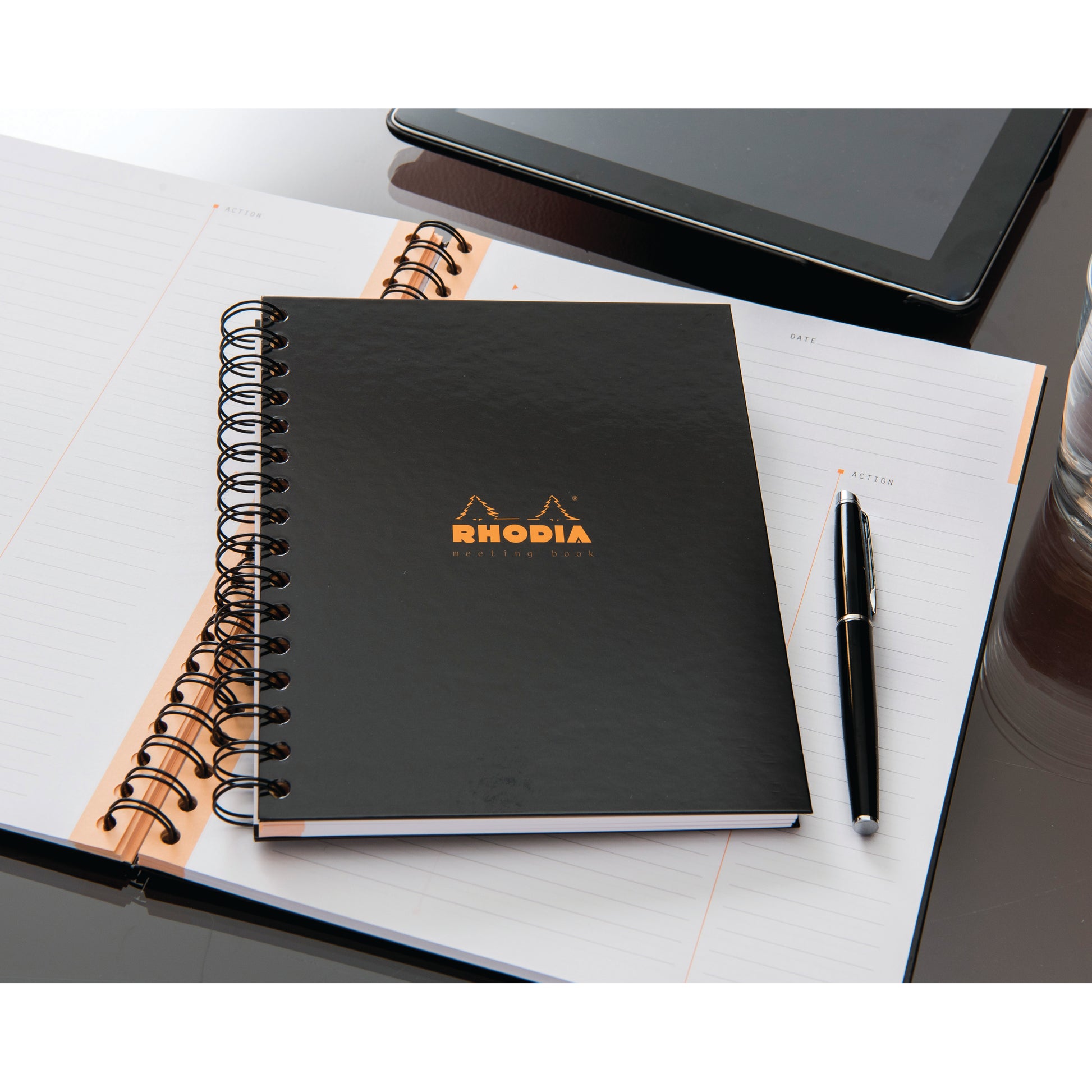 Rhodia Meeting Book A4 Wirebound Hard Back. Pre-printed pages showing Date and Notes and Action. 160 pages.