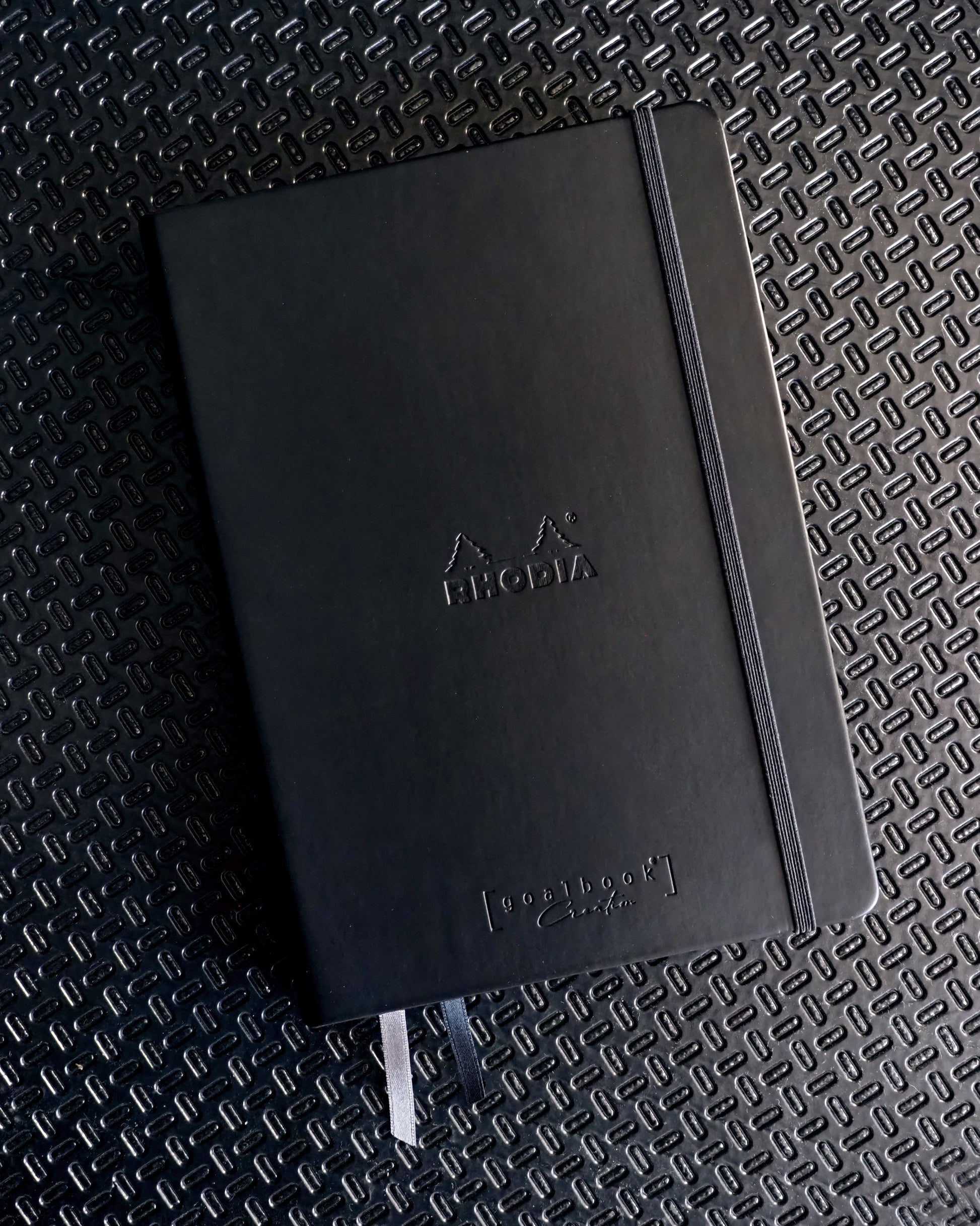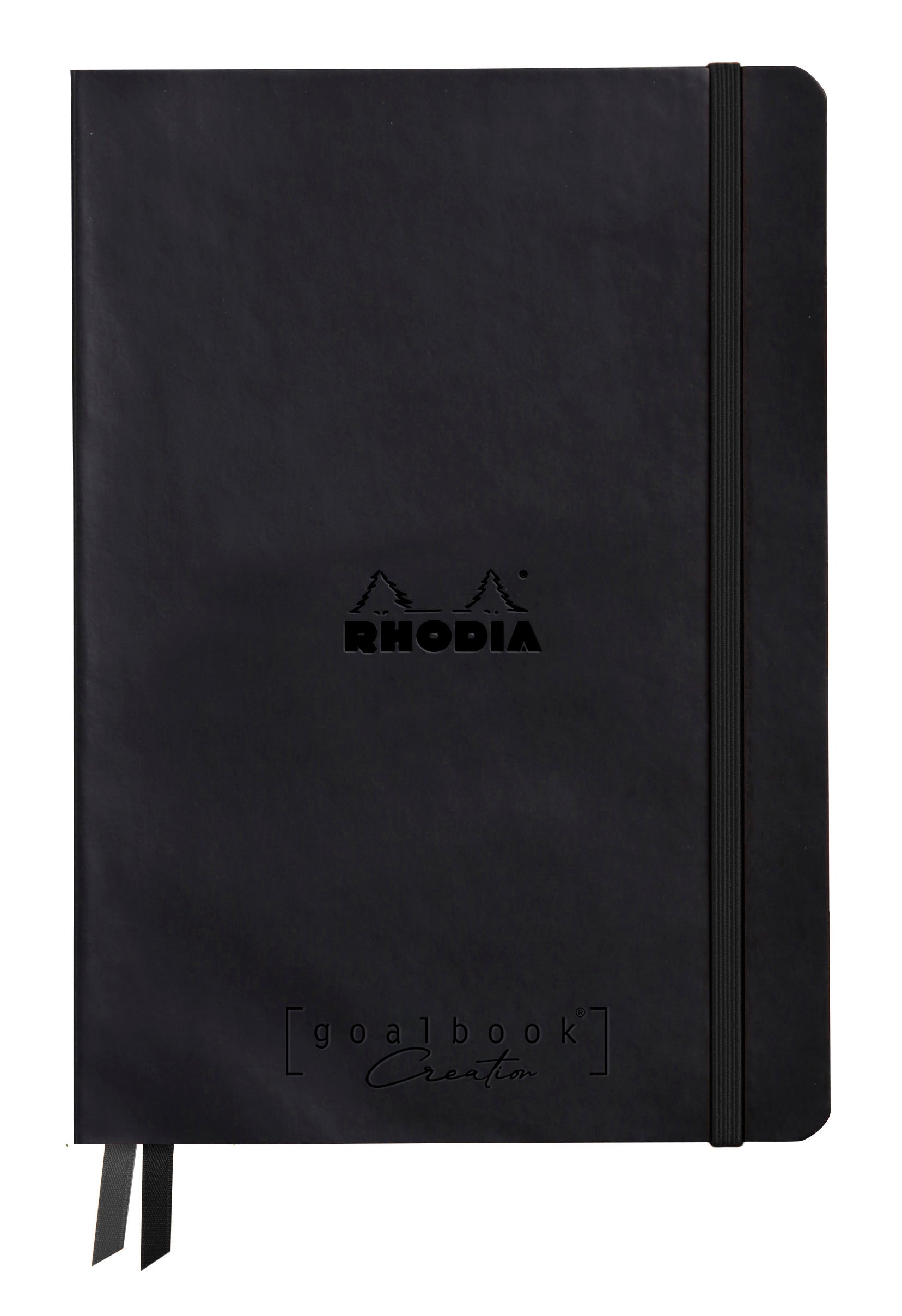 Clairefontaine Rhodiarama Creation Dot Goalbook A5 Black 194440C. 160 pages (80 sheets). Hard cover backed in Italian leatherette. 6 Page index. Quality 120gsm numbered sheets of black Maya paper. Two perpetual calendars for organisation.