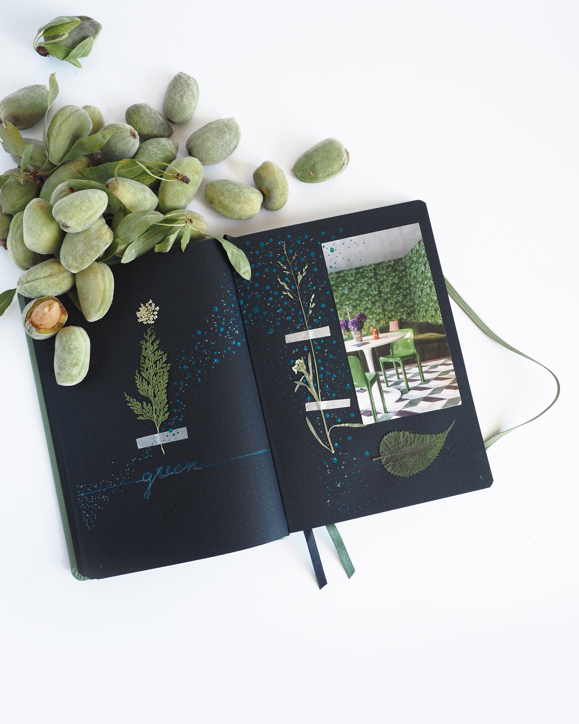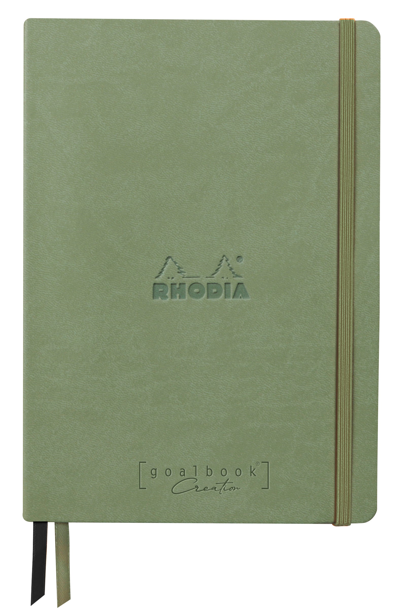 Clairefontaine Rhodiarama Creation Dot Goalbook A5 Celadon 194446C. 160 pages (80 sheets). Hard cover backed in Italian leatherette. 6 Page index. Quality 120gsm numbered sheets of black Maya paper. Two perpetual calendars for organisation.