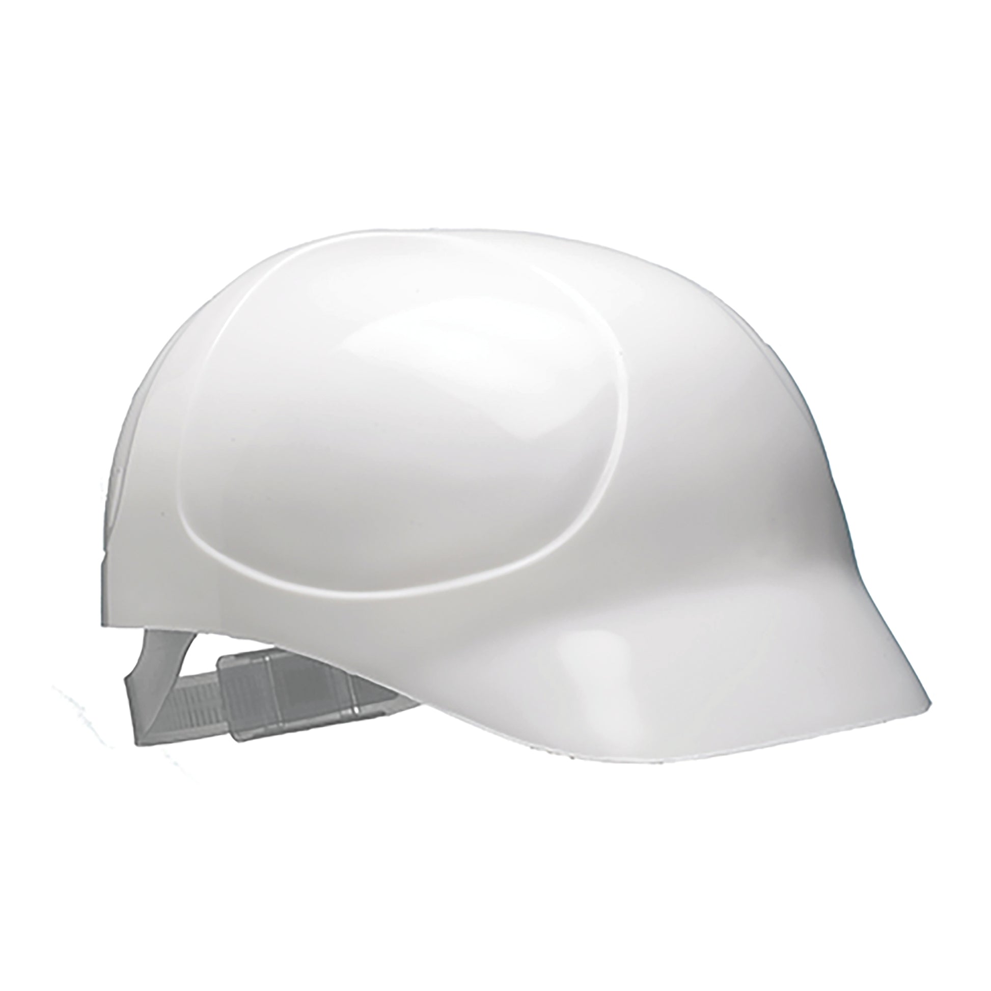 Centurion S19 Reduced Peak Bump Cap. PVC sweatband for comfort. Replaceable, adjustable plastic cradle. Lightweight HDPE 200G. Reduced peak. Available for pad printing. For use in the food industry when sterilisation is required. Conforms to EN 812:2012.
