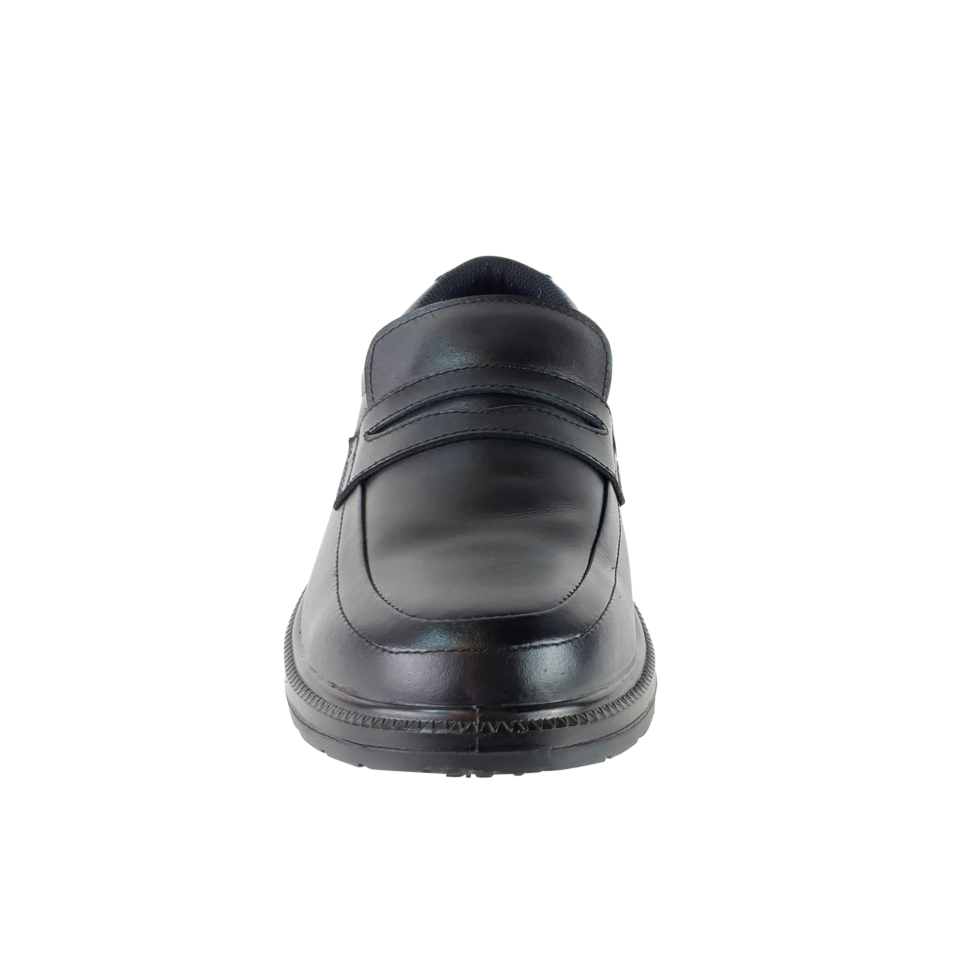 Samson Ellis Uniform Safety Shoe Slip On Black Size 6 9078-06. Ideal for dress attire/uniform wear. Water resistant leather. Cambrelle lining. Stainless Steel toe cap. Anti-penetration steel midsole. Heat resistant rubber outsole. Anti-fatigue comfort.