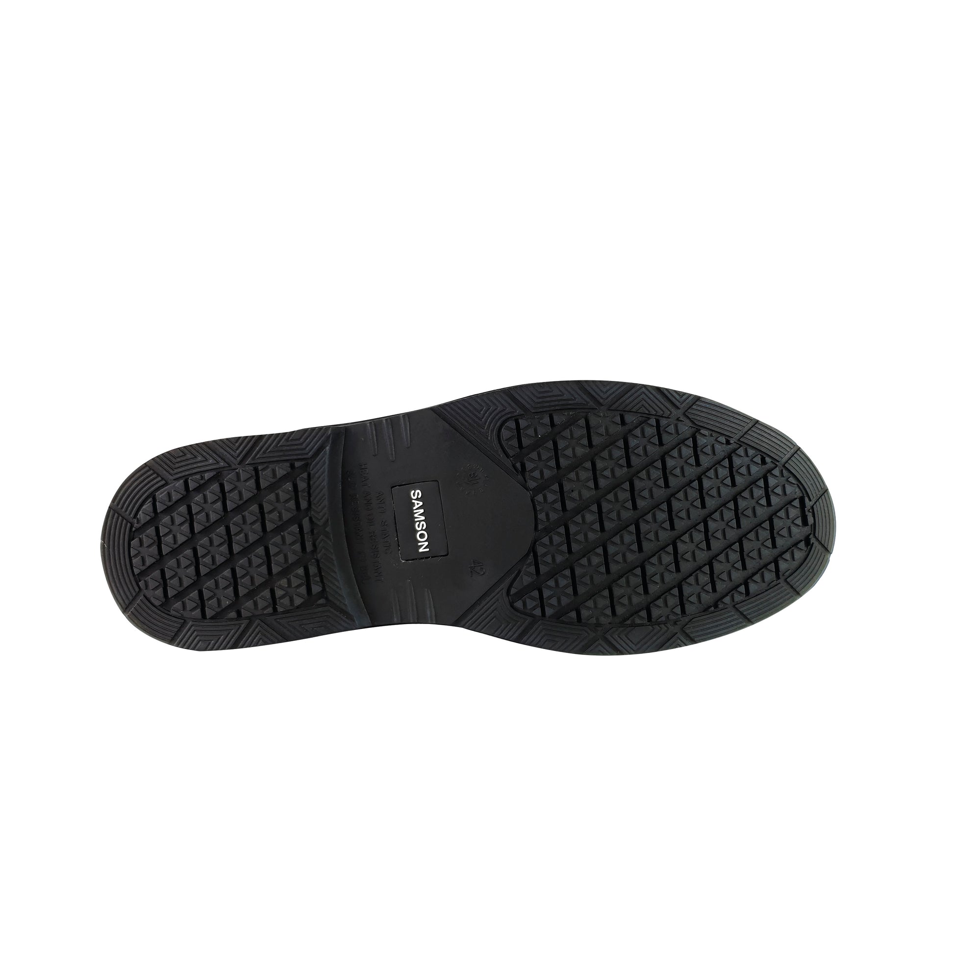 Samson Ellis Uniform Safety Shoe Slip On Black Size 9 9078-09. Ideal for dress attire/uniform wear. Water resistant leather. Cambrelle lining. Stainless Steel toe cap. Anti-penetration steel midsole. Heat resistant rubber outsole. Anti-fatigue comfort.