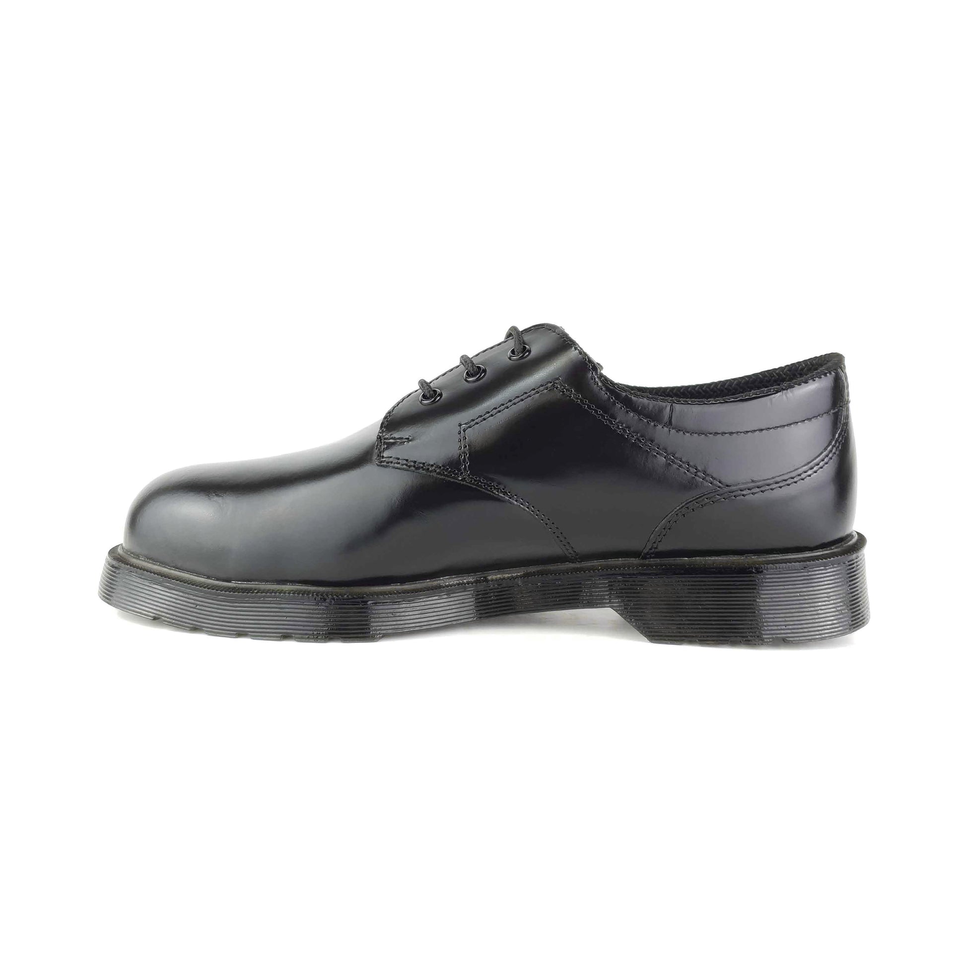 Samson Esquire Uniform Safety Shoe 3 Eyelet. Unisex range. Steel Toe Cap (200 joules to EN 20345). Vamp Lining rot-proof, synthetic to EN 20345. Padded collar. Sole and heel translucent PVC direct cemented to the leather upper.