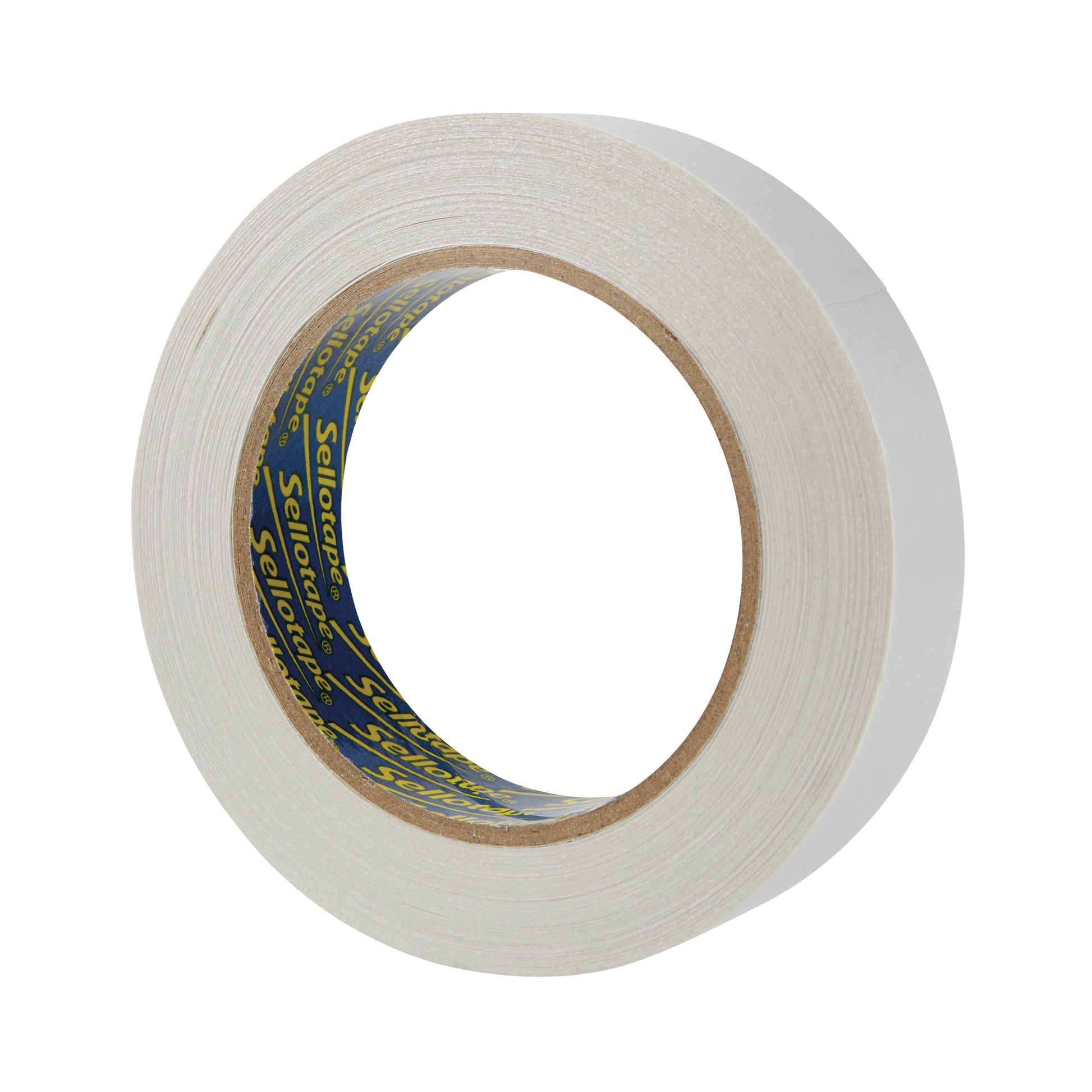 Sellotape Double Sided Tape 25mmx33m (Pack of 6) 1447052 Perfect for sealing packages and envelopes or mounting lightweight objects. Easy tear for quick application. Easy remove back strip. Small core. Size: 25mm x 33m Pack of 6.
