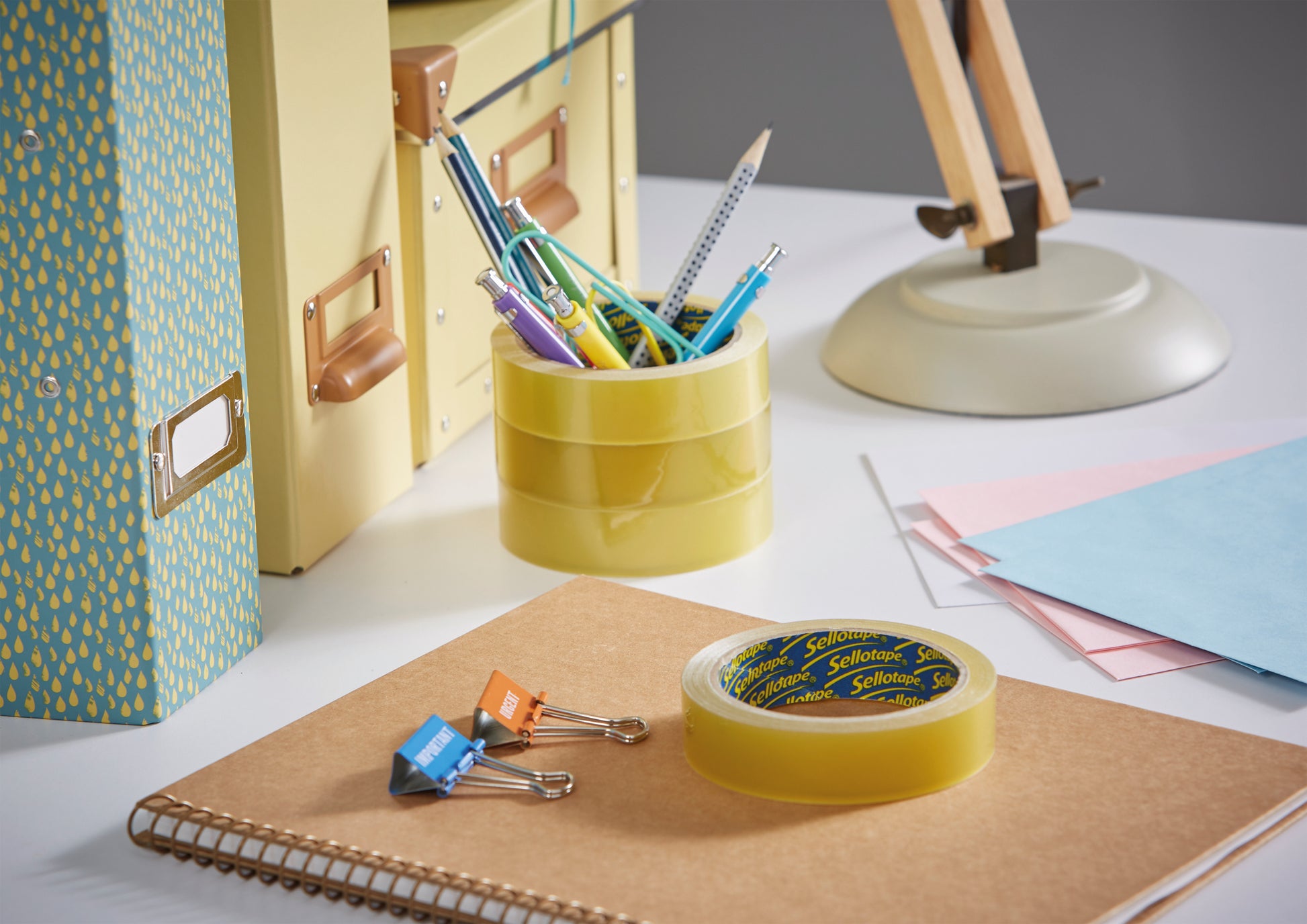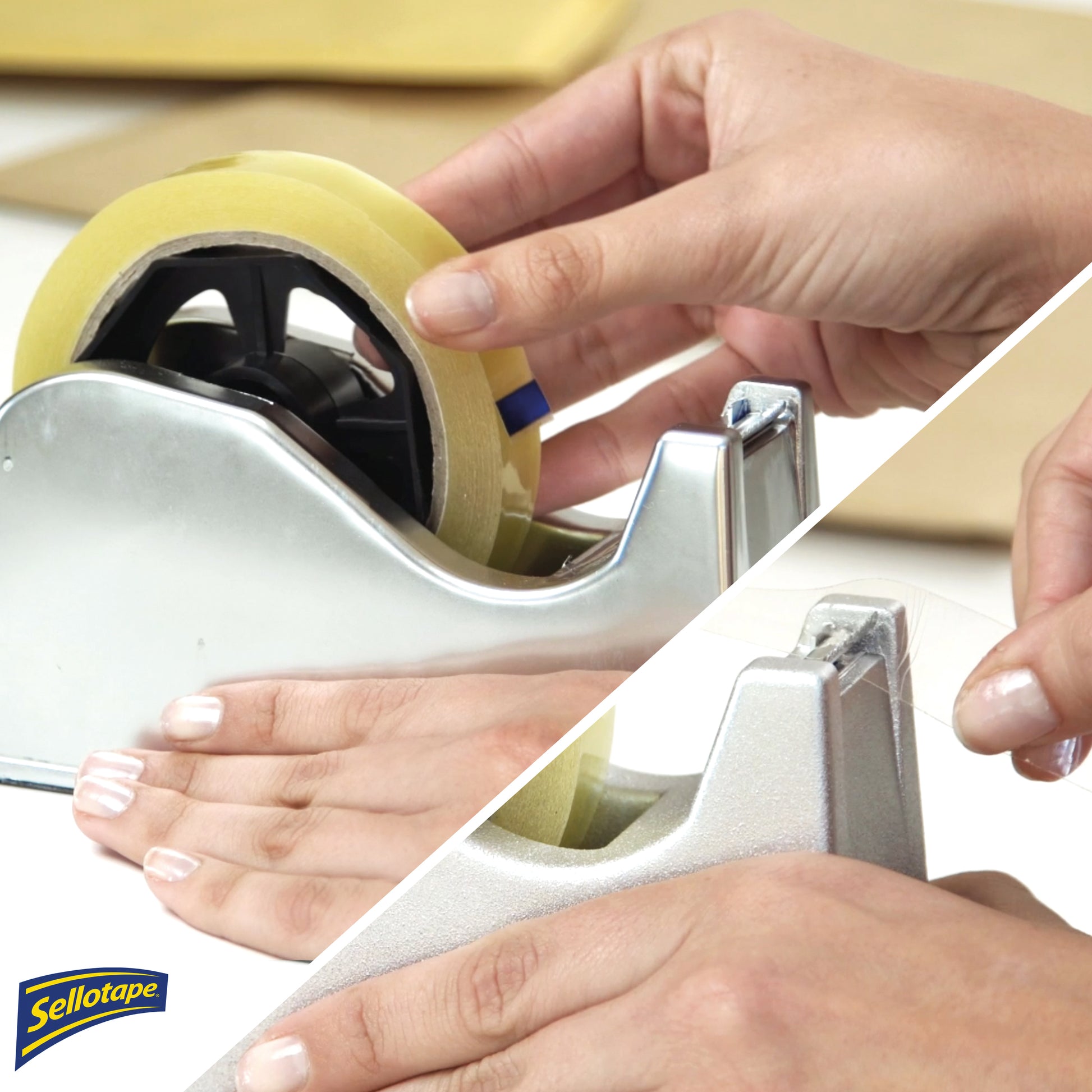 Sellotape Original Golden Tape 24mmx50m Clip Strip (Pack of 12) 2928293. Extra strong and extra sticky tape. Golden in colour, but clear when applied. Easy tear for quick application. Anti-tangle for better control.