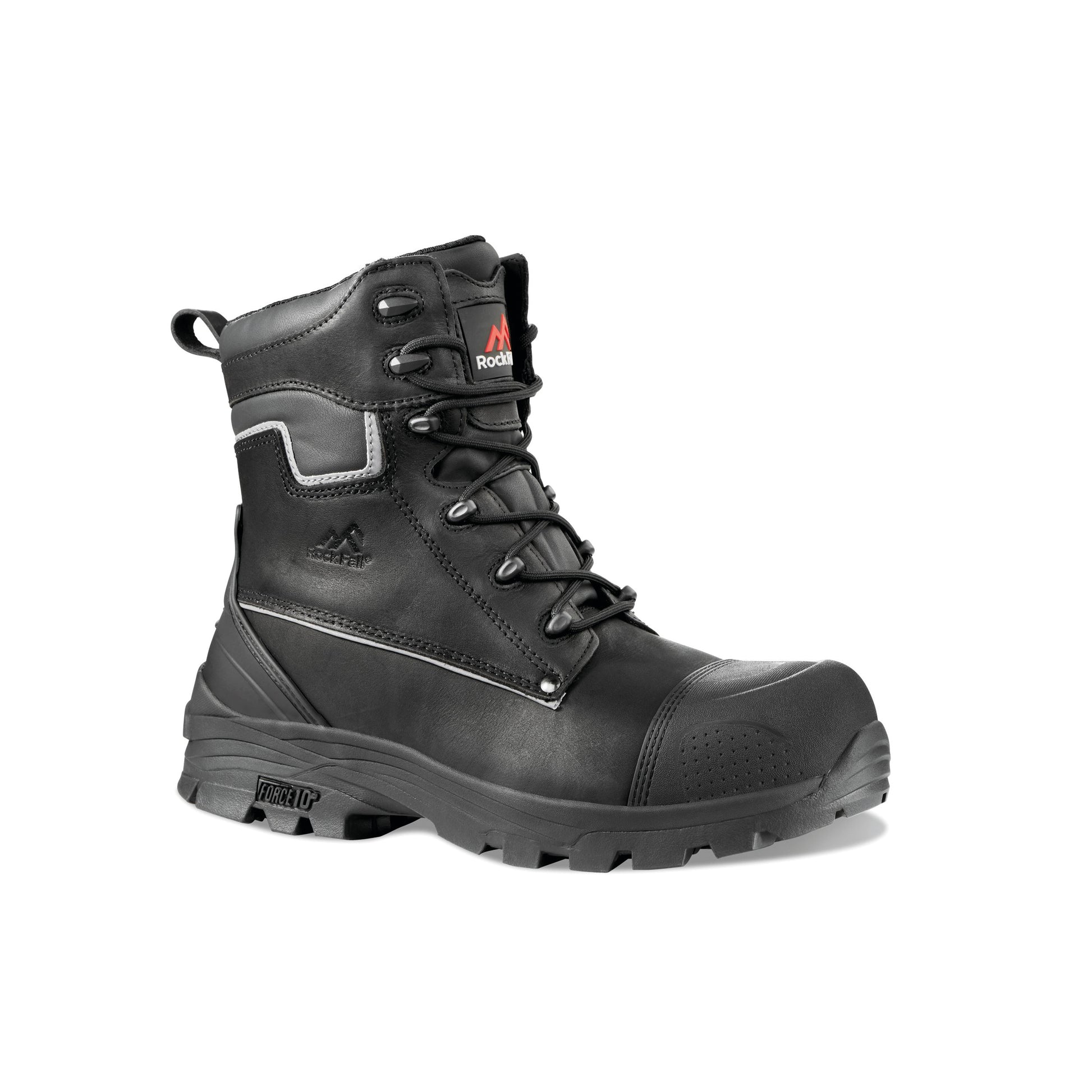 The Rock Fall Shale high leg safety boots with lace up and side zip fastening. Robust and cold insulating boots developed with durable materials including FORCE10 components. IMPACT SHIELD for protection when digging and a TPU ankle guard.