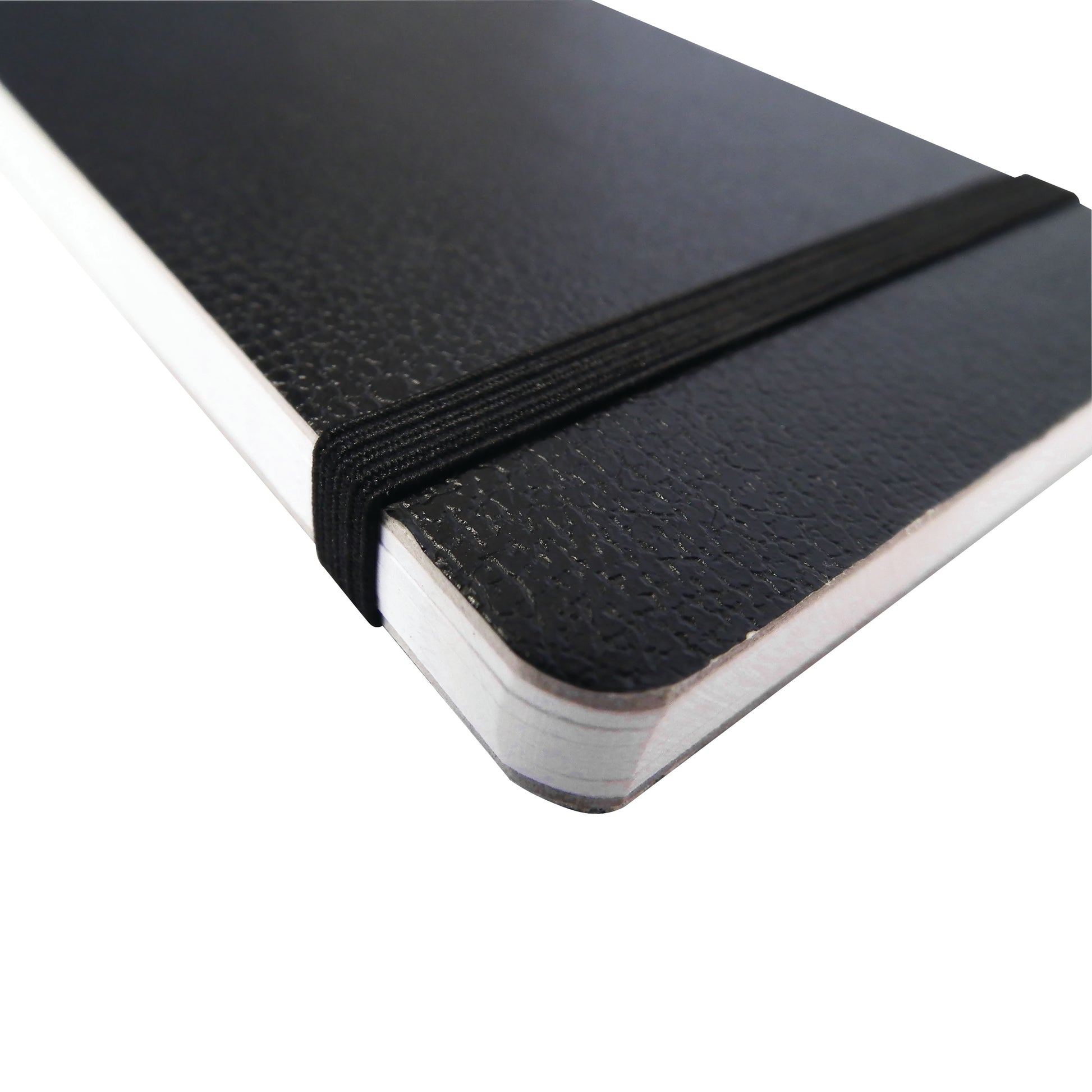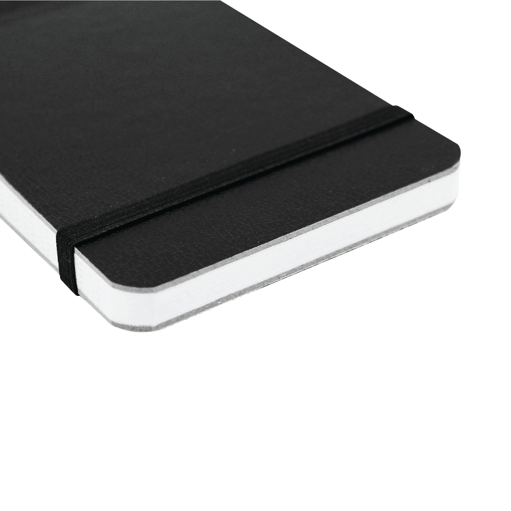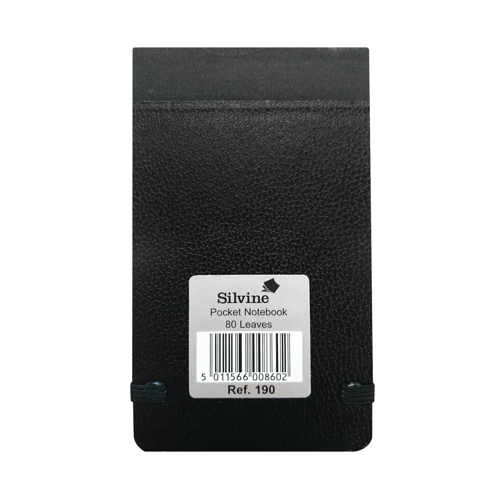 Elasticated pocket notebook. 160 pages. Quality lined paper. Stiff Black covers. Handy for note taking on the move. Size 78x127mm. Pack of 12.