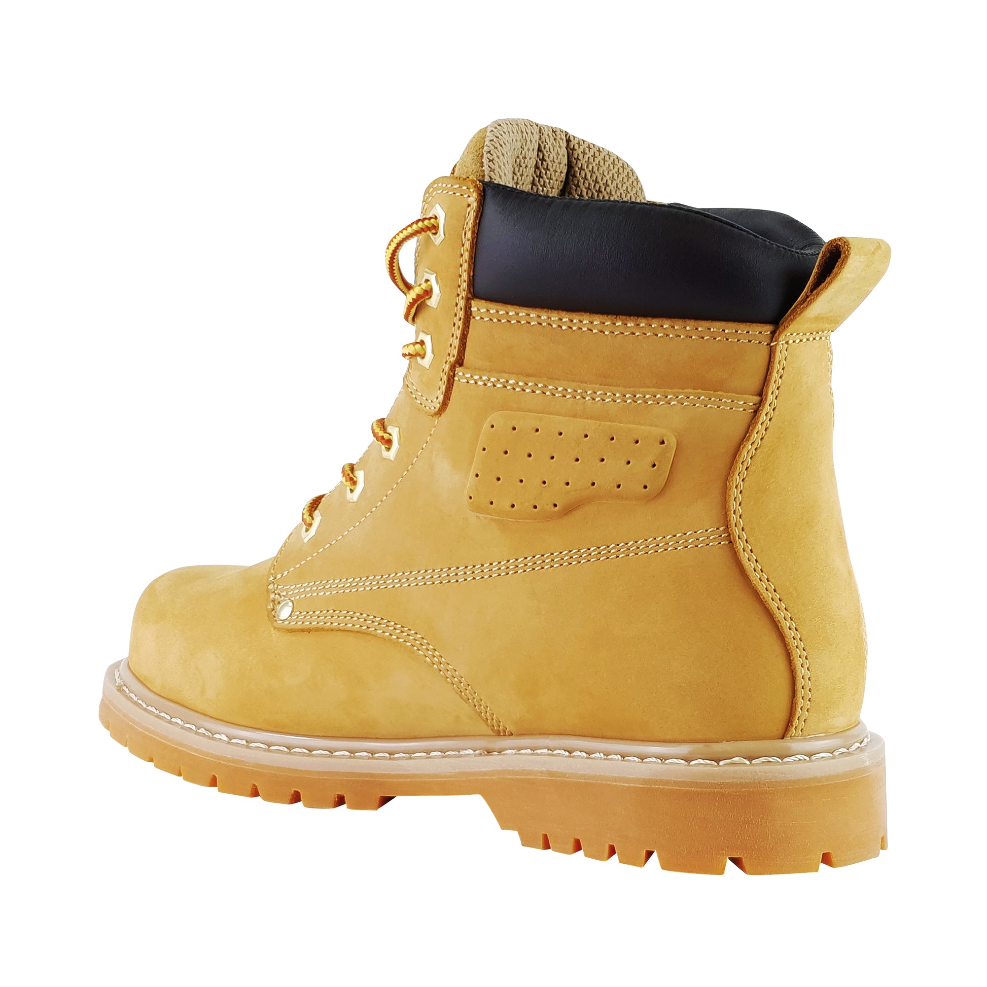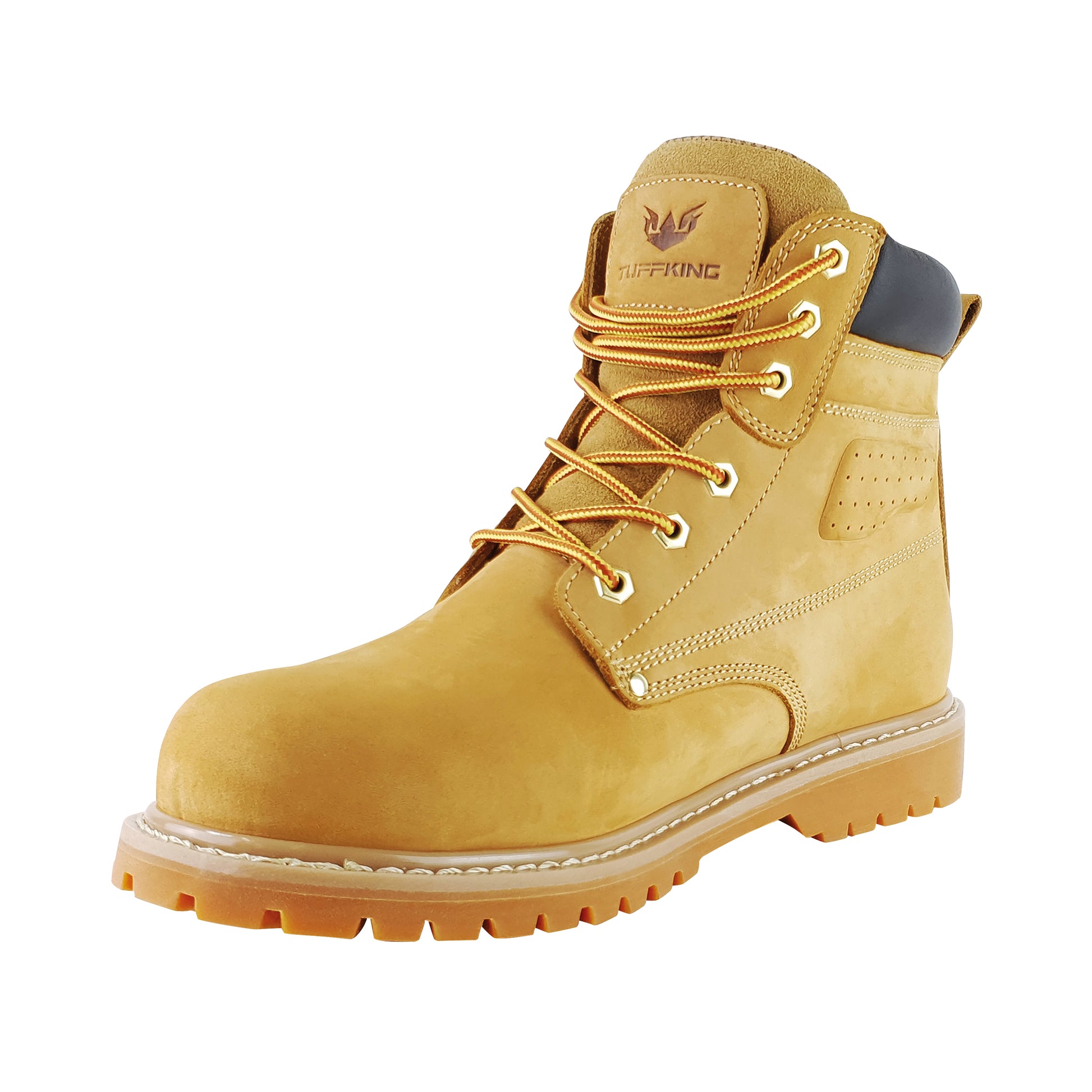Tuffking Alder Safety Hiker Boot. Stainless Steel Midsole and Toe Cap (EN 20345: 2011). Padded collar/ankle/tongue. Anti-fatigue foam footbed. Side ventilation, energy absorbent heel. Ladder grip. Goodyear Welted Construction.