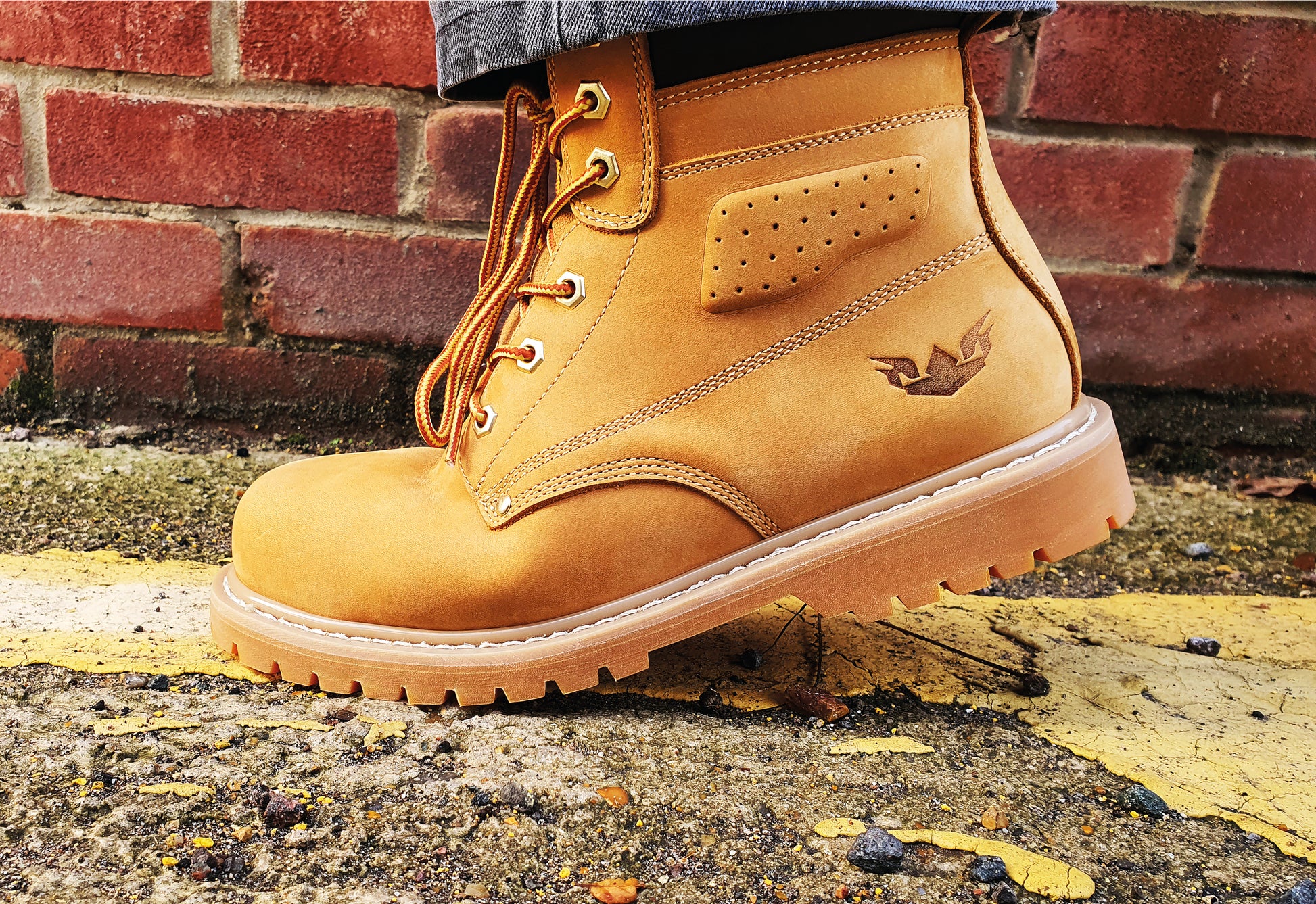 Tuffking Alder Safety Hiker Boot. Stainless Steel Midsole and Toe Cap (EN 20345: 2011). Padded collar/ankle/tongue. Anti-fatigue foam footbed. Side ventilation, energy absorbent heel. Ladder grip. Goodyear Welted Construction.