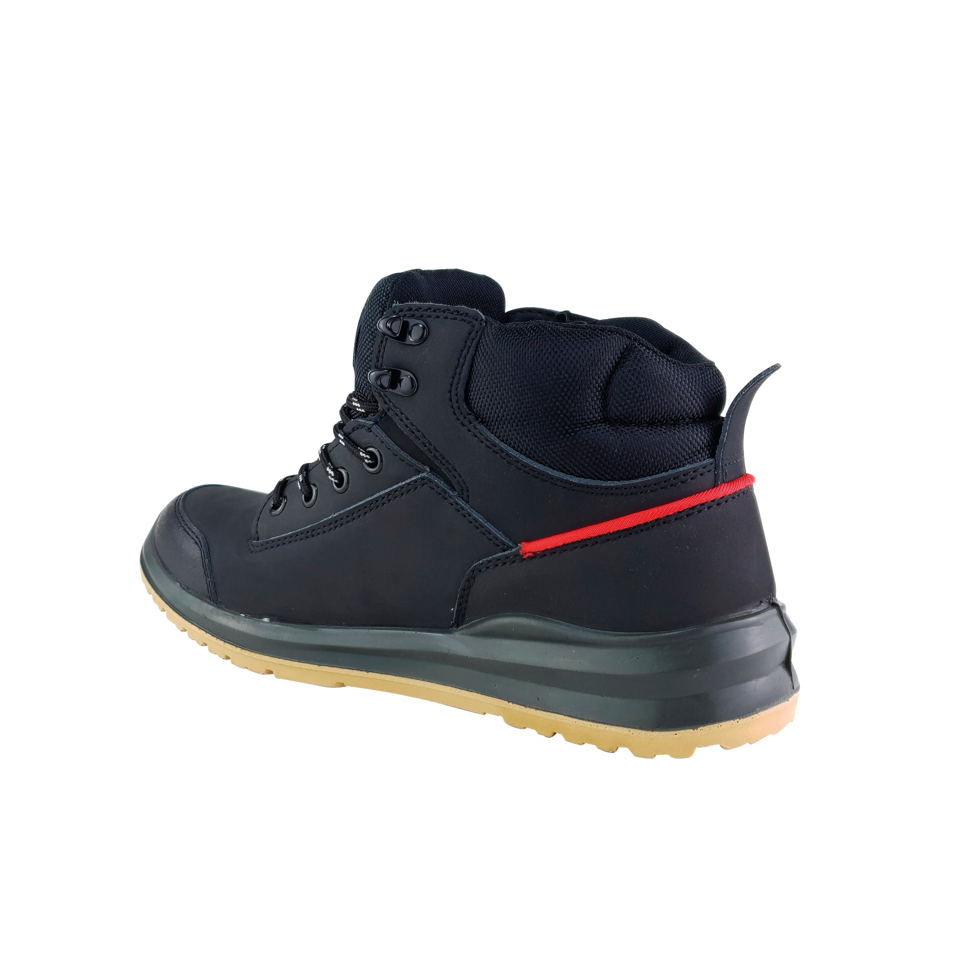 Tuffking Grind Safety Hiker Boot. Anti-corrosion Stainless Steel midsole and toe cap (200 joules). Scuff guard, Xtra-Lite EVA foam footbed, double padded tongue and collar. Action nubuck leather with an absorbent Cambrelle lining.