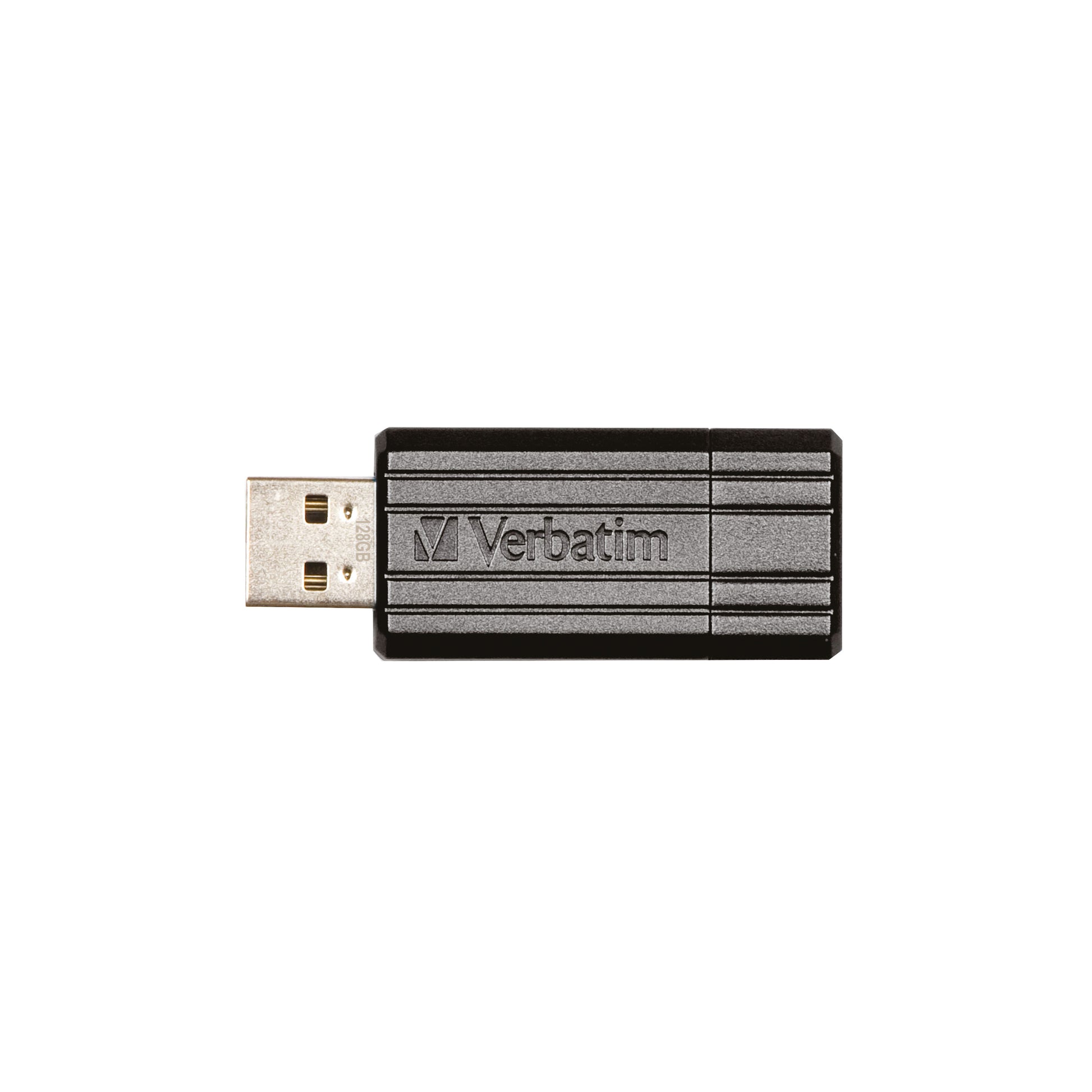 Verbatim Store n Go Pinstripe USB drive. Push and pull sliding feature to protect the USB connection. Password protection software. USB 2.0. Capacity: 128GB. Colour: Black.