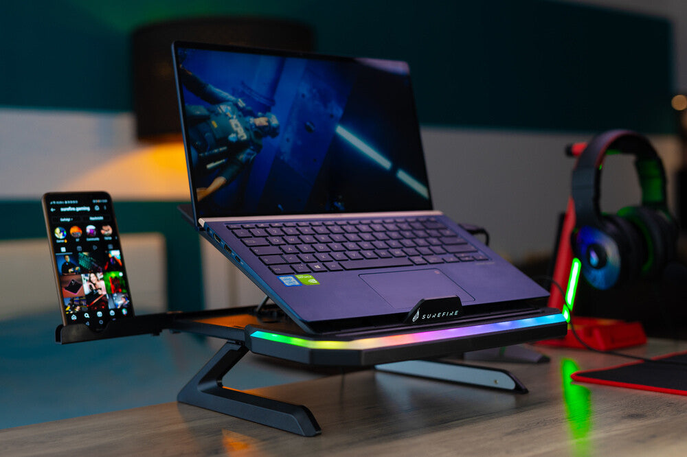 SUREFIRE 2-LEVEL LAPTOP STAND WITH RGB LIGHTING