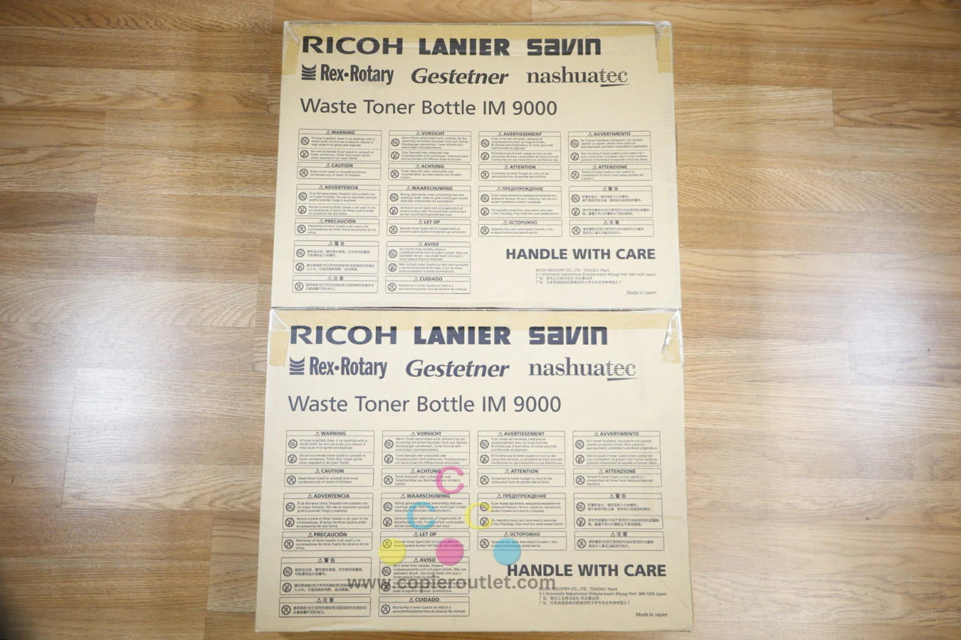 The Ricoh Waste Toner Bottle IM 9000 is an essential component designed to collect waste toner produced during printing. It helps maintain printer performance by preventing toner buildup and ensures clean and efficient operation of the Ricoh IM 9000 series printers.