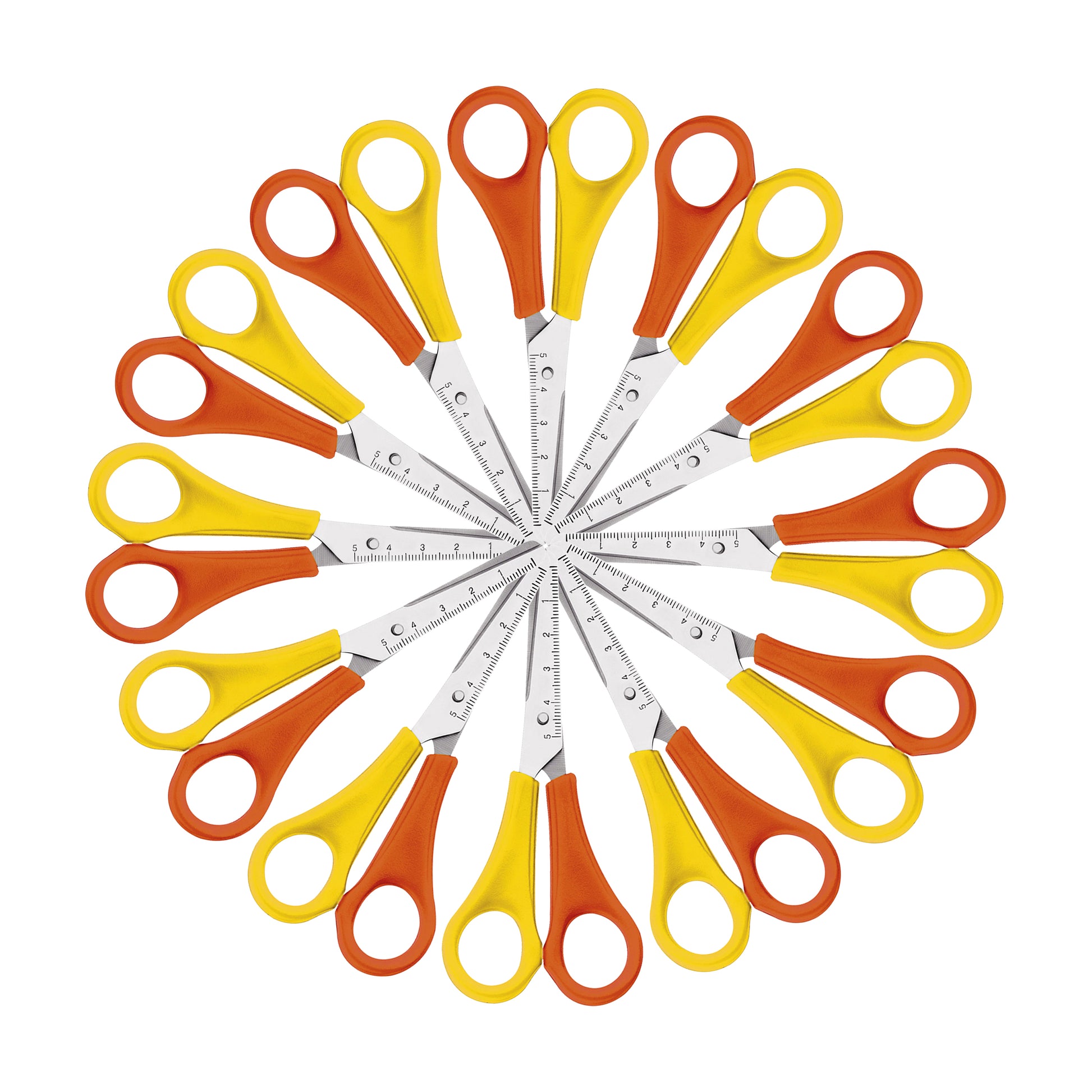 Acme united Westcott kids scissors 13cm. Age recommendation 4+. 5cm scale on the blade. Colour coded plastic handles.