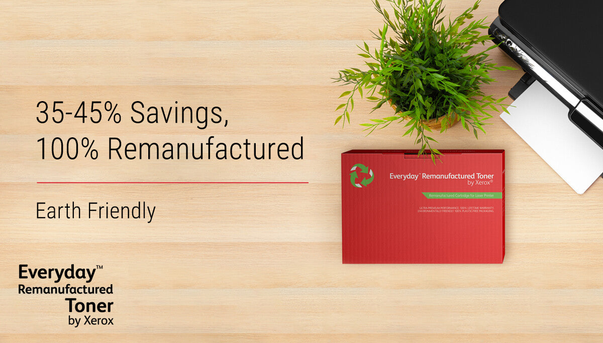 Being environmentally responsible is simply the best way to do business, because it positively impacts the health of our planet, your company and your people. Everyday Remanufactured Toner by Xerox has the lowest carbon footprint than any single-use toner cartridge. Because you shouldn't have to choose between doing your part to reduce your eco-impact and your toner costs. And compatibility with the most popular printer brands means you can enjoy benchmark Xerox quality and stewardship no matter what kind of printer you have.